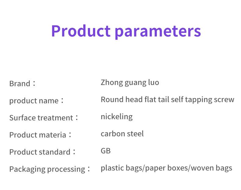 Nuestros materiales de producto incluyen acero al carbono, acero inoxidable 304, acero inoxidable 201, acero inoxidable 410, plástico, cobre puro, etc. Nuestra empresa opera actualmente más de 14000 especificaciones de producto. Los productos se utilizan principalmente en los campos de producción de computadoras, comunicación, robots eléctricos inteligentes, relojes, gafas, instrumentos, automóviles, luminarias LED, pequeños electrodomésticos, equipos médicos, juguetes, electrodomésticos, muebles, construcción, etc. Venta al por mayor de fábrica, ¡bienvenido a consultar y comprar!
