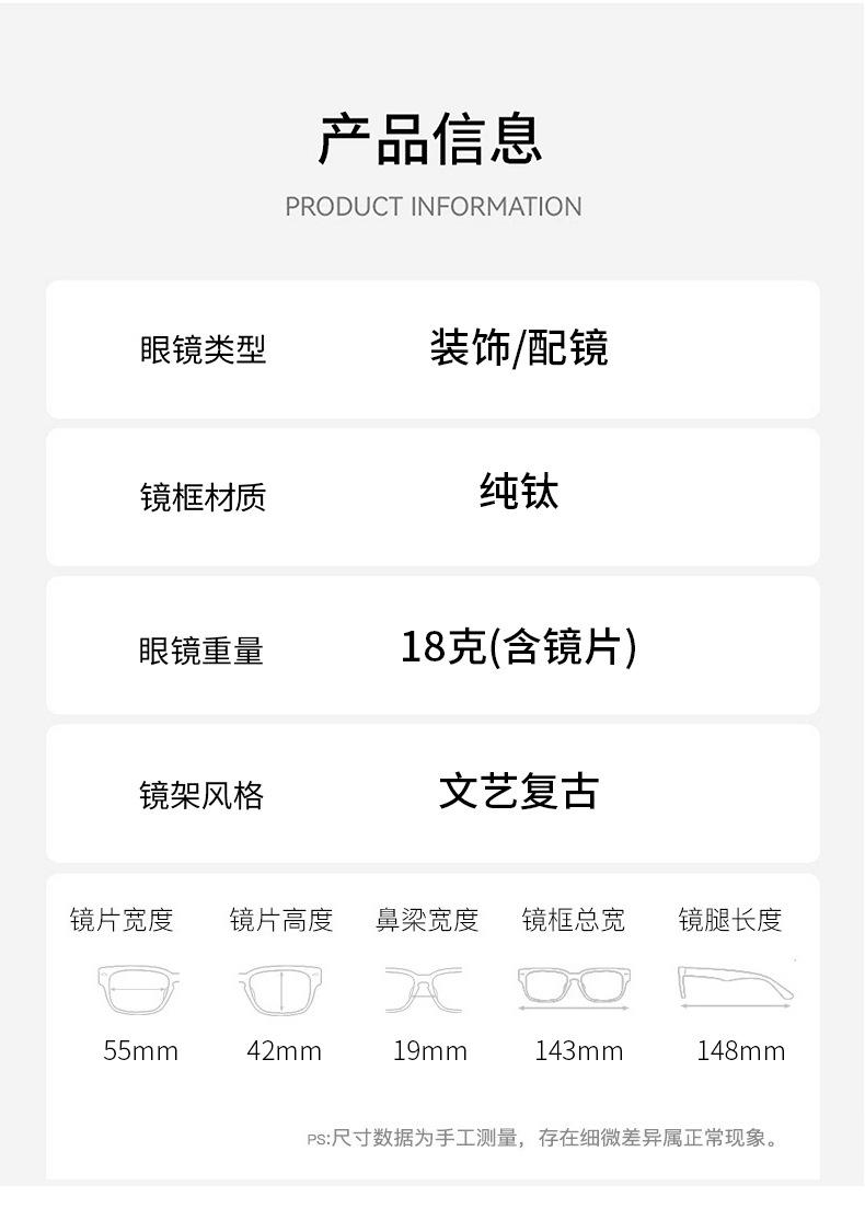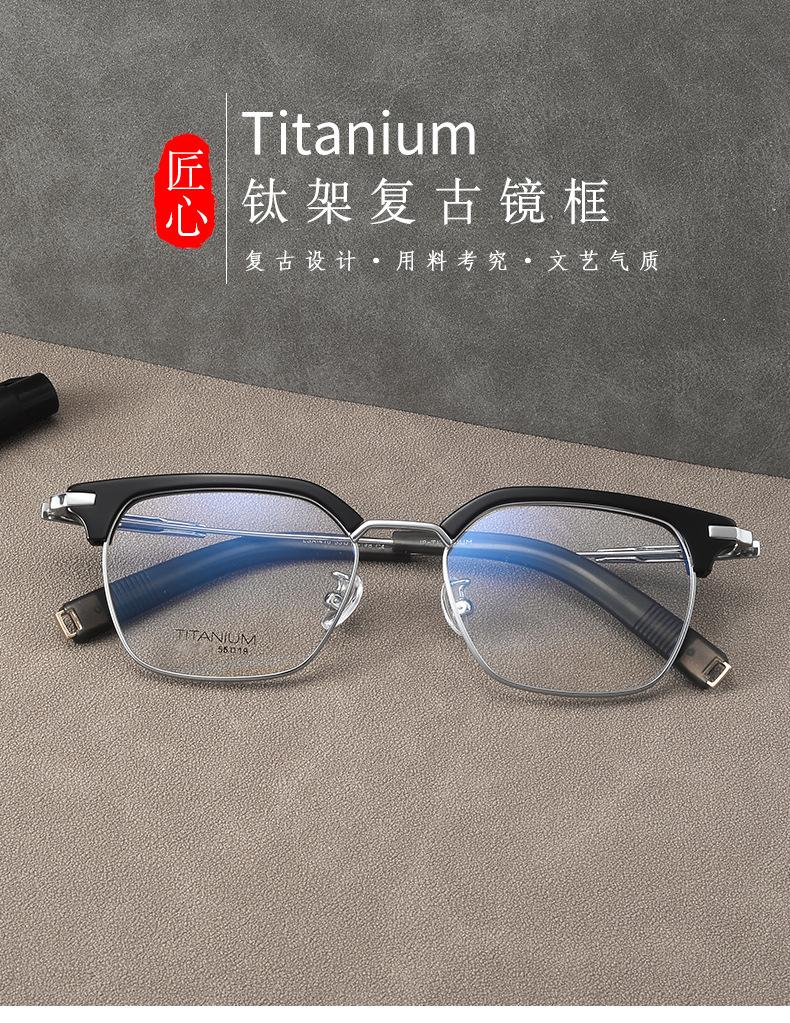 Danyang Gafas Montura de Gafas de Titanio Puro 98461 Estilo Japonés Montura de Ceja Retro Montura de Gafas para Miopía Gafas Planas