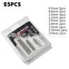 Especificaciones del producto:Juego de brocas helicoidales de 25 piezas incluye 0.5mm*5pcs, 0.6mm*5pcs, 1.0mm*3pcs, 1.2mm*2pcs, 1.5mm*2pcs, 1.8mm*2pcs, 2.0mm*2pcs, 2.35mm*2pcs, 3.0mm*2pcs.