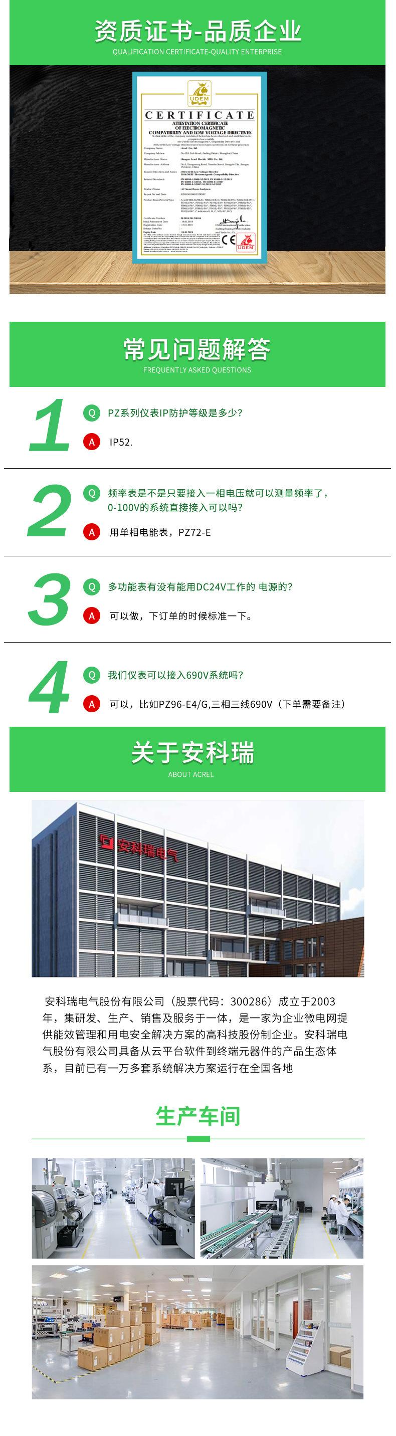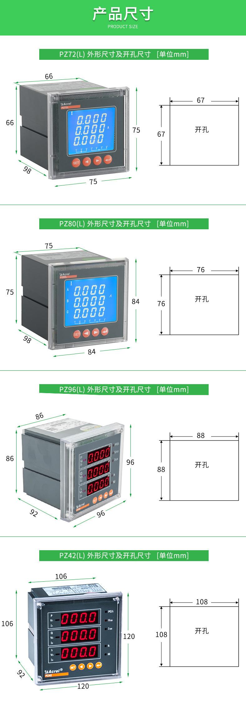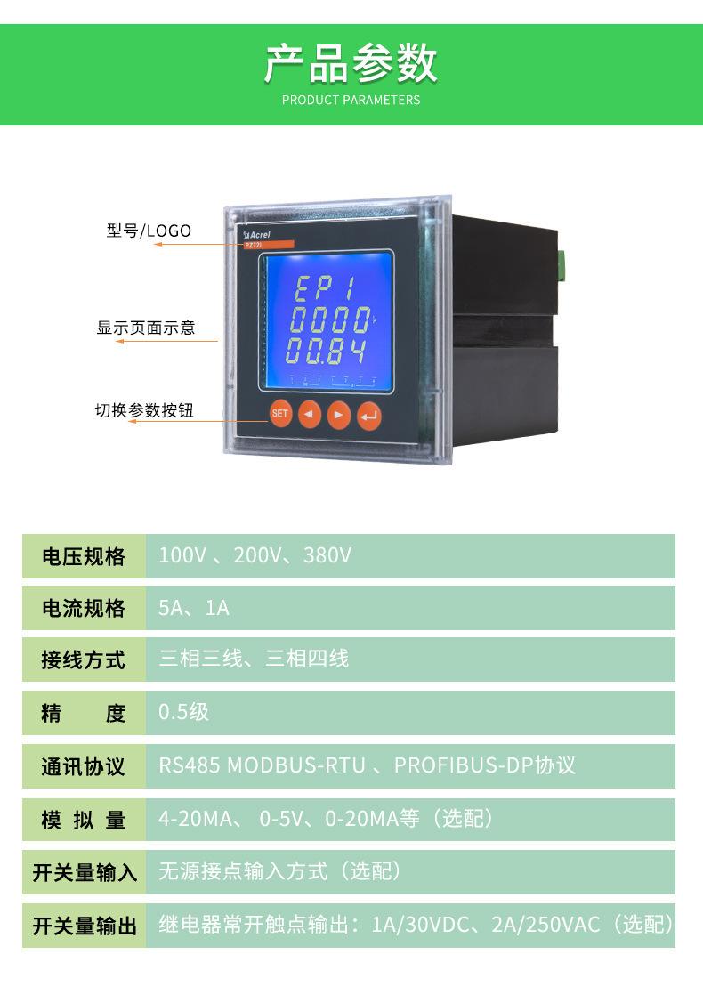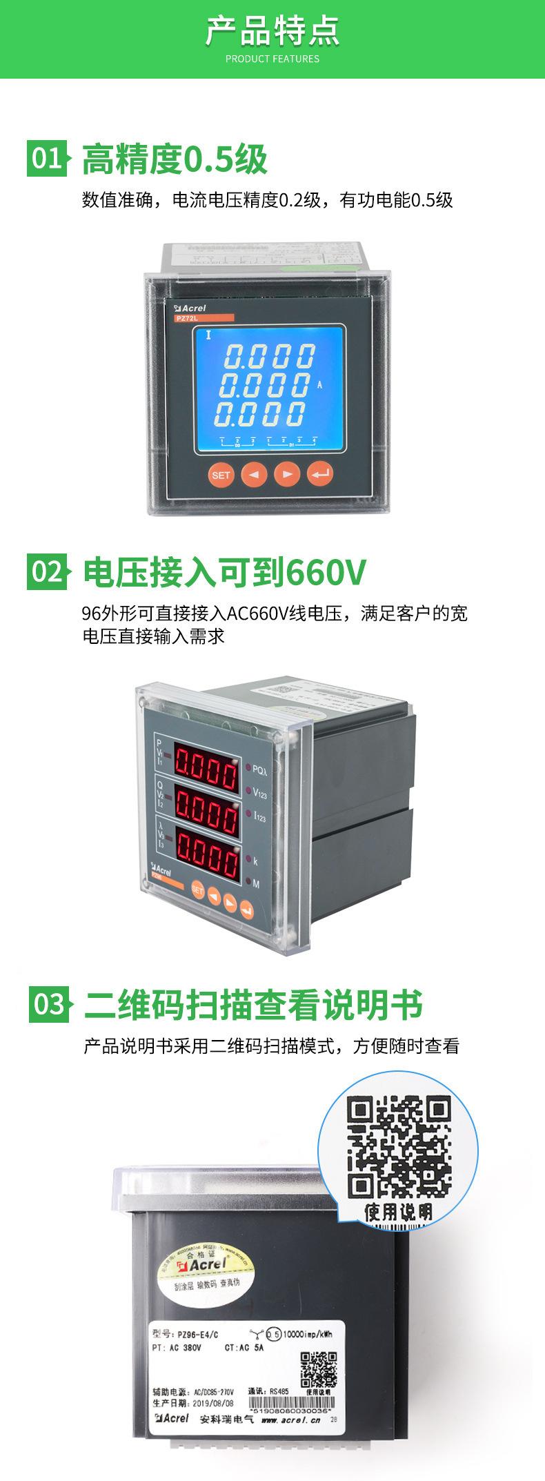 Medidor de energía inteligente programable Ankerui PZ72-E de cuatro cuadrantes con interruptor analógico RS485