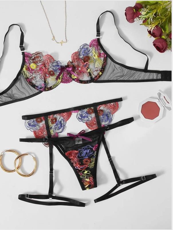 Compra Suministro de comercio exterior Europa y Estados Unidos Nuevo conjunto de ropa interior sexy de tres puntos con encaje bordado para damas al por mayor en Joom.pro