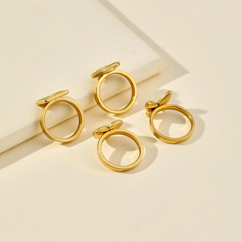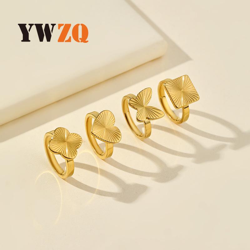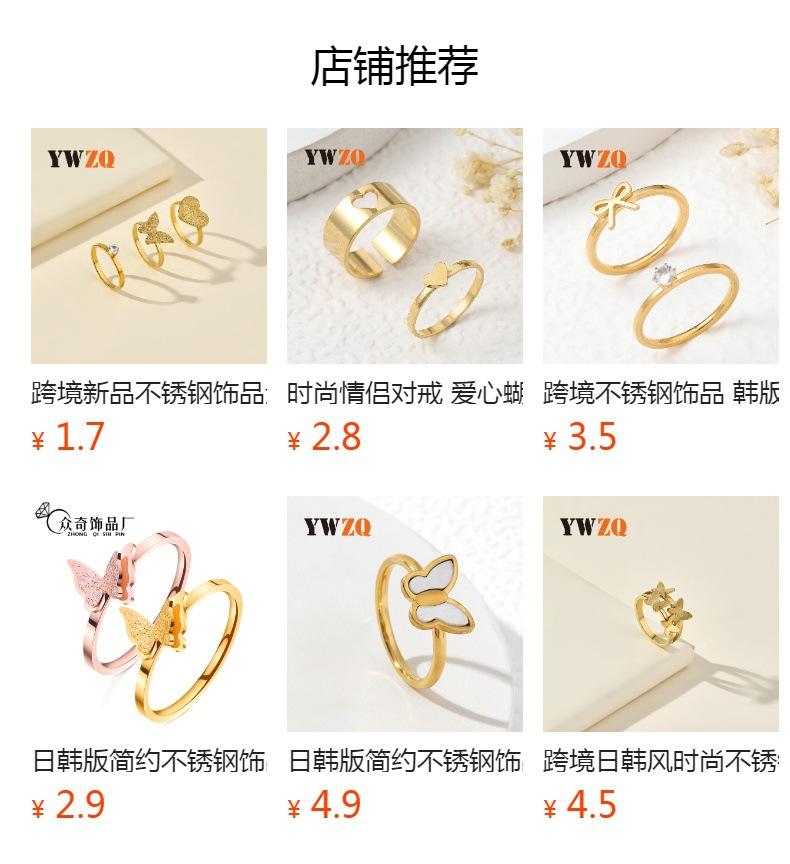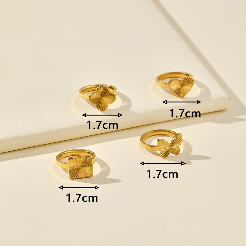 Anillo de acero de titanio transfronterizo para mujer, nicho de oro de alta calidad, grano de amor, mariposa cuadrada, fabricantes de joyas de acero inoxidable