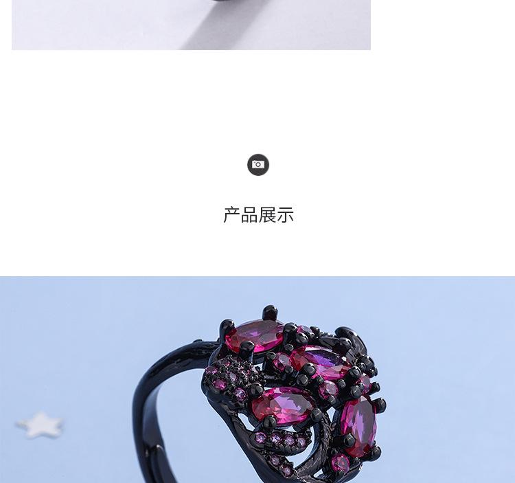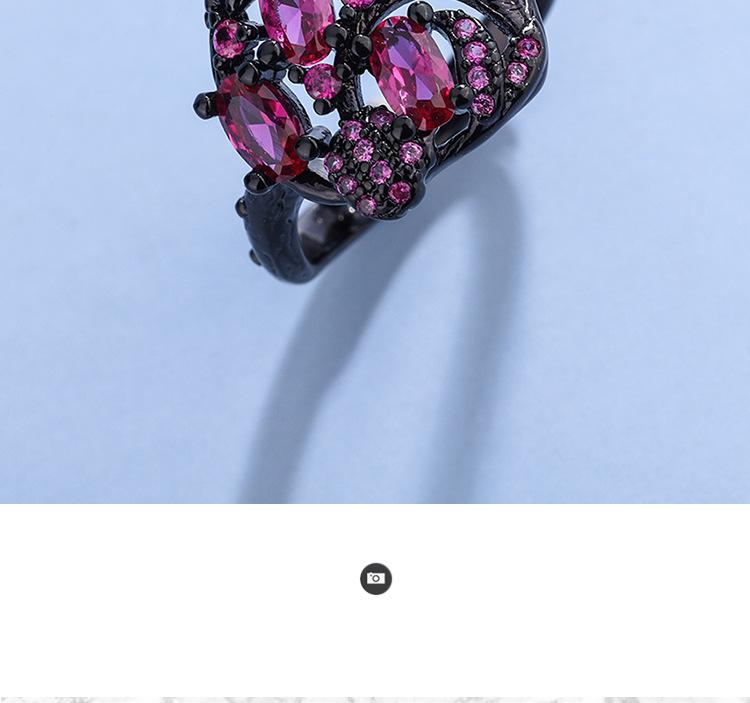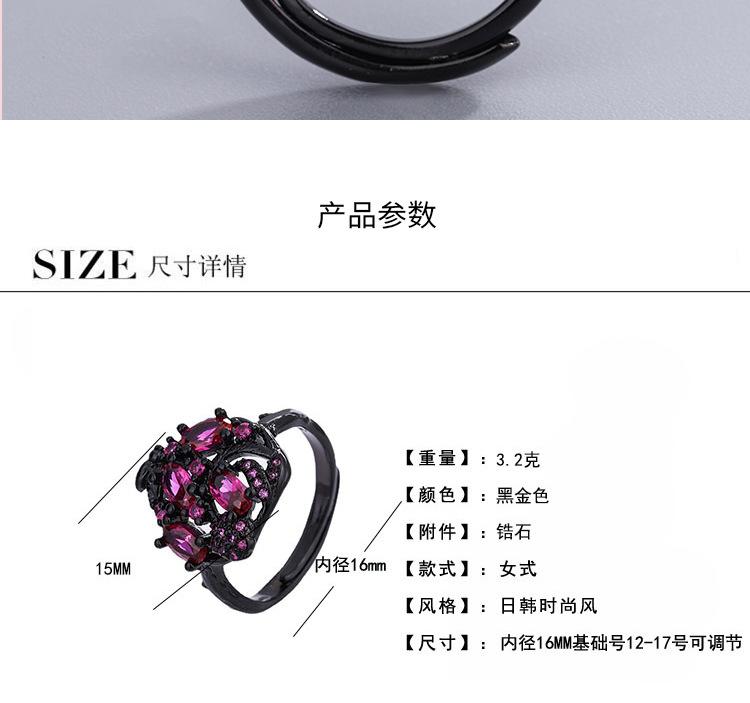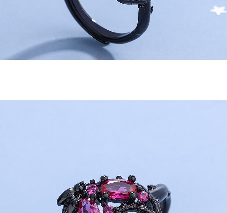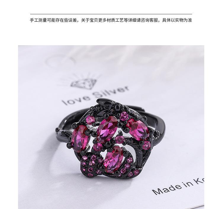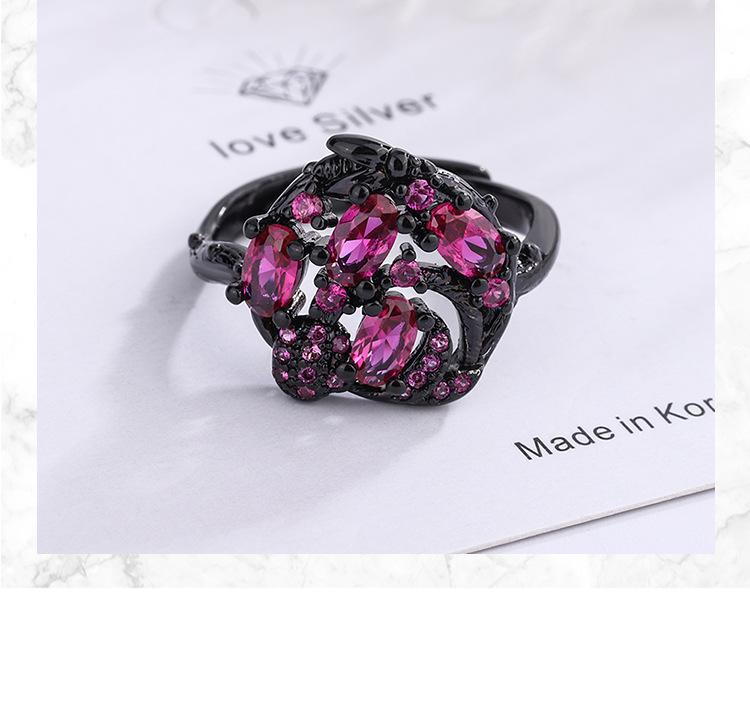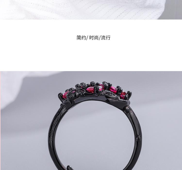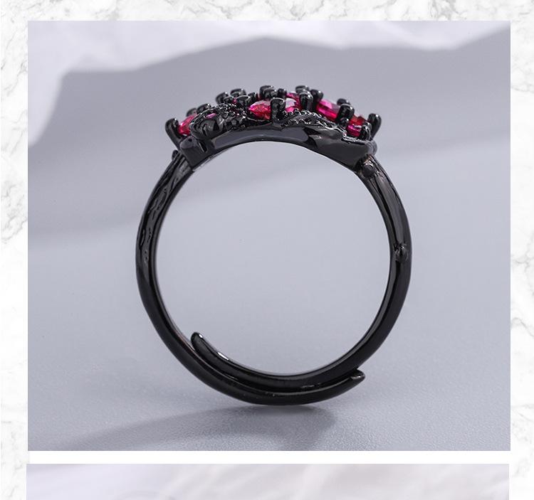 Anillo Oro Negro para Mujer Estilo Coreano Estilo Ins Rama Simple con Diamante Rojo Moda Anillo de Joyería de Mano Abierta
