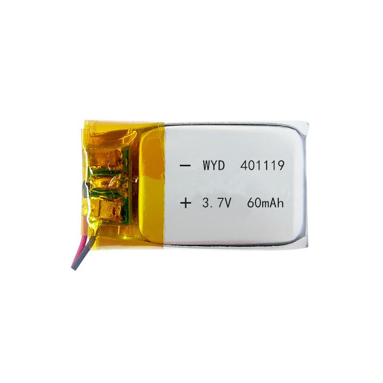 Batería de polímero de litio Wei Yueda 401119 de 60 mAh y 3,7 V para auriculares Bluetooth, control remoto, palo selfie, núcleo de batería