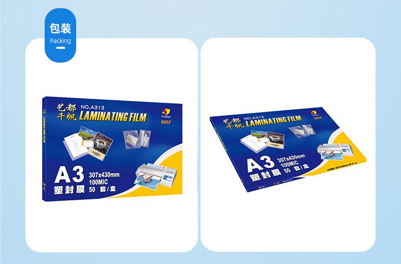 Qianfan Película para Laminar A3 Película para Laminar 10C Película para Laminar Papel para Laminar 10 Mil 50 Hojas/Paquete Documento Laminación de Alta Definición