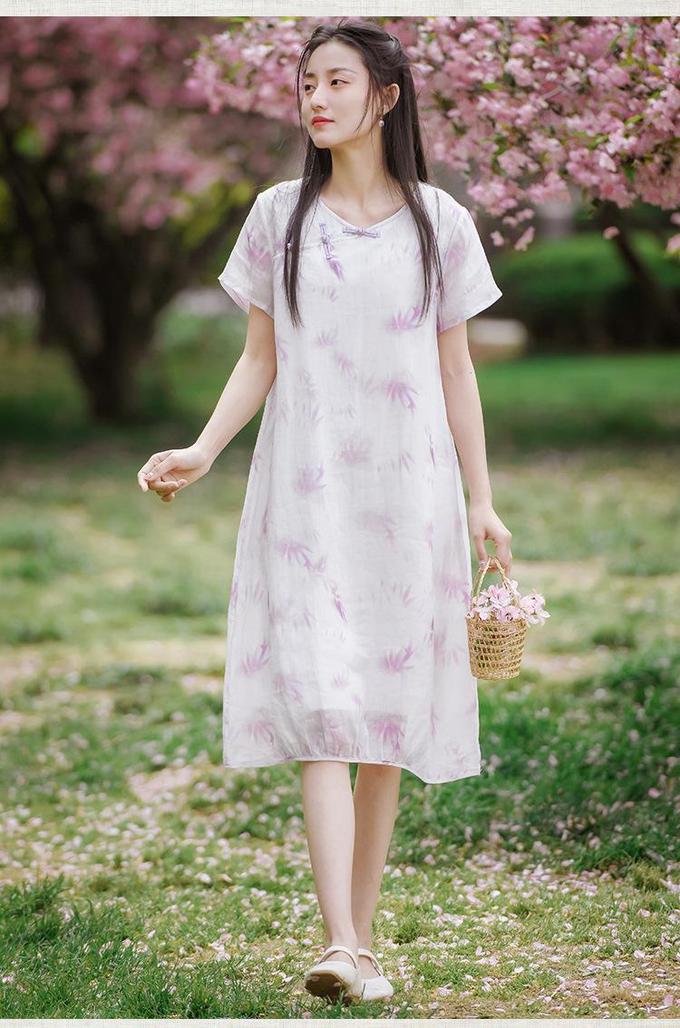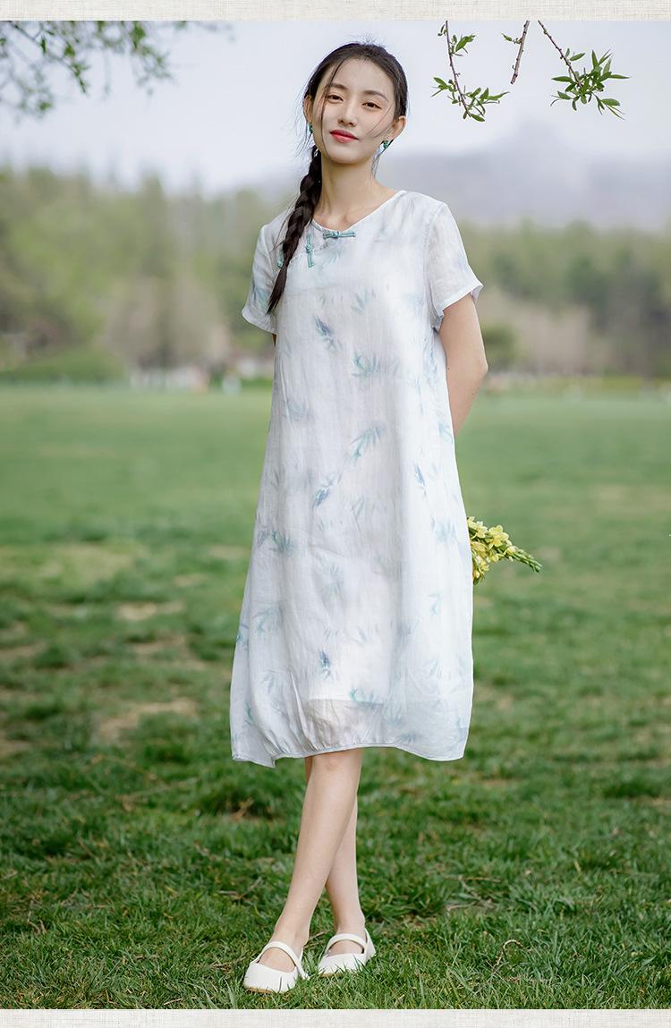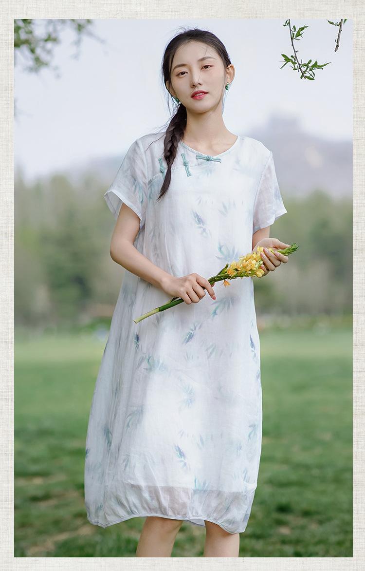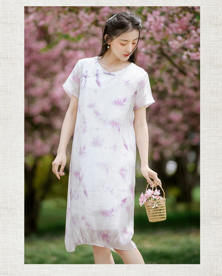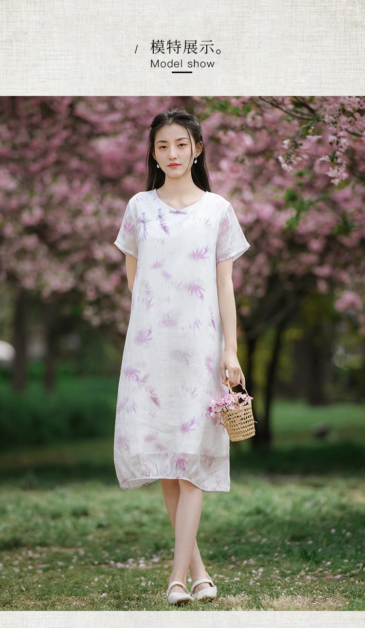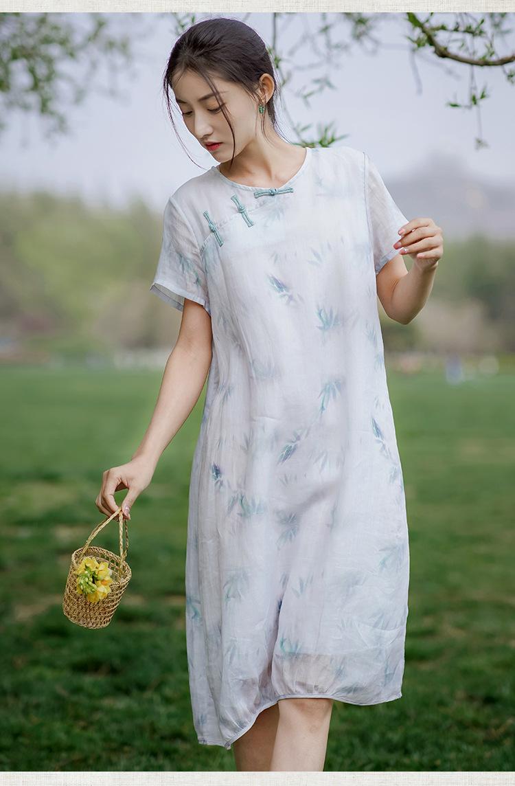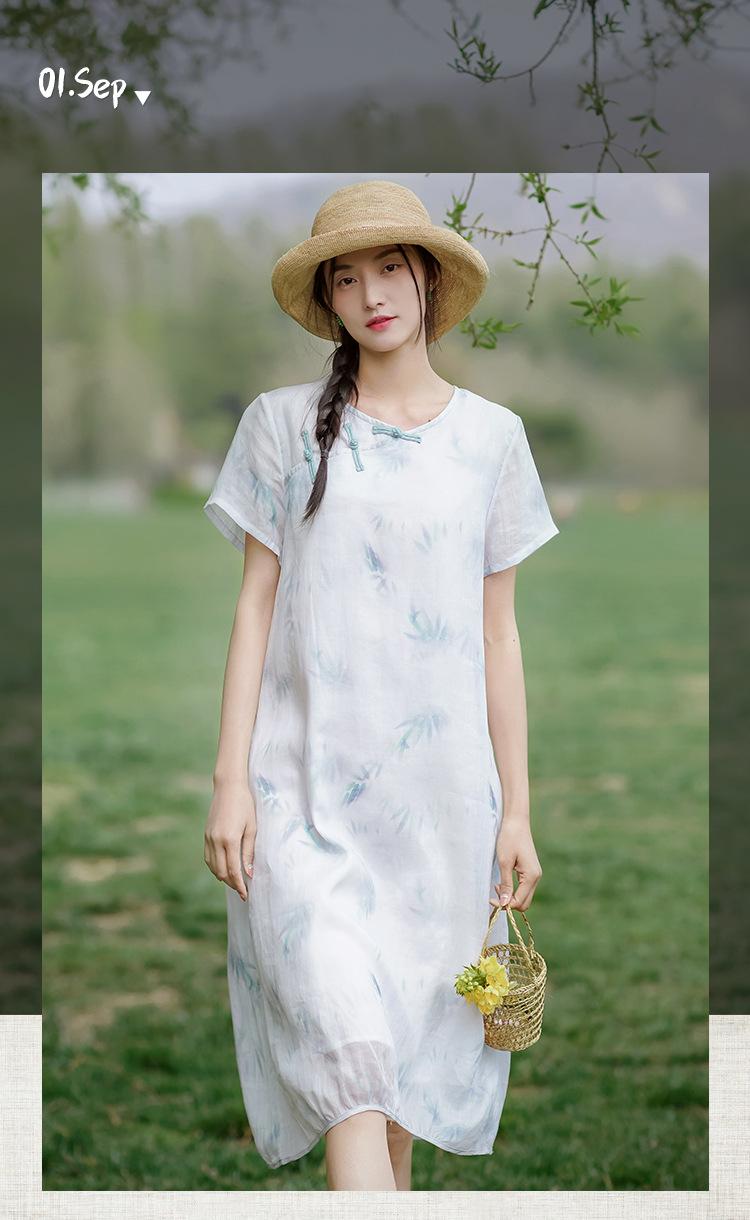 Ropa de mujer de algodón y lino 2023, nuevo vestido de manga corta para mujer, nuevo estilo chino de verano, cheongsam modificado, ramio, estilo nacional, ropa de té