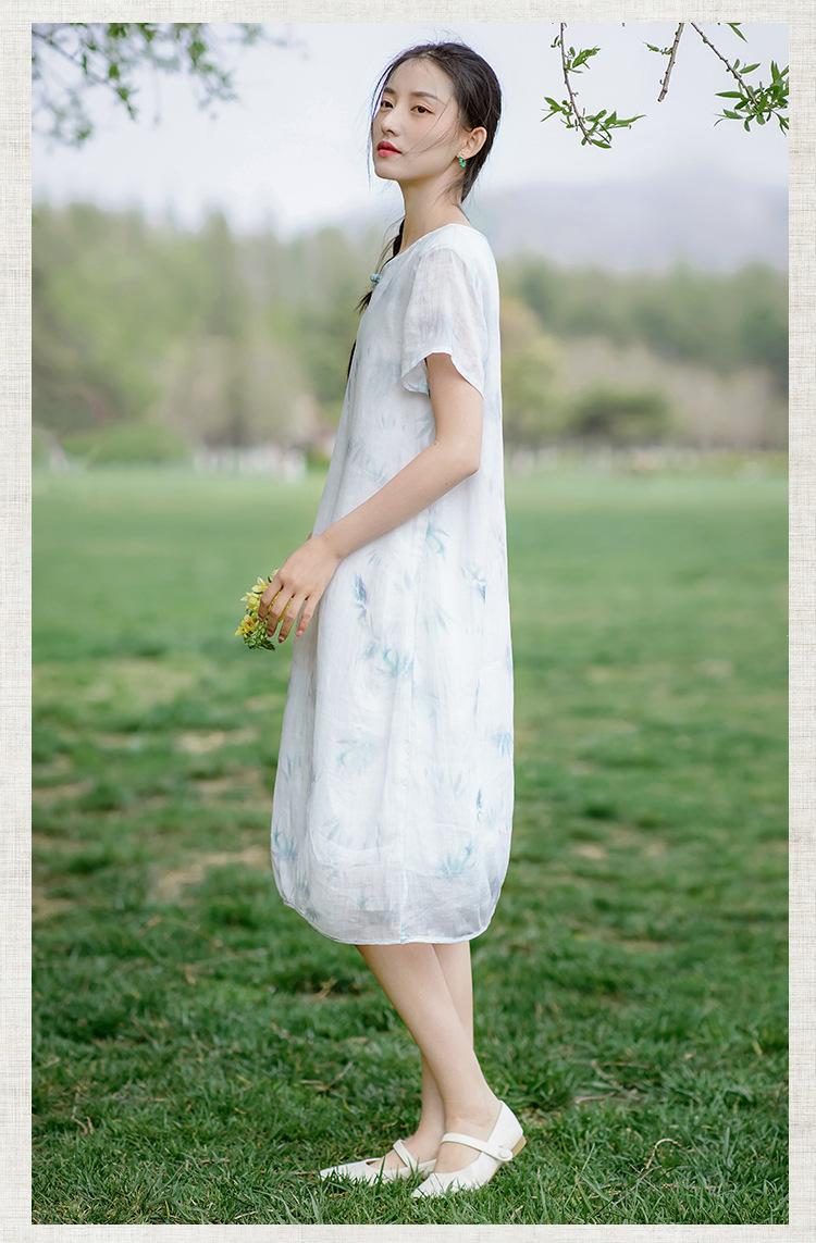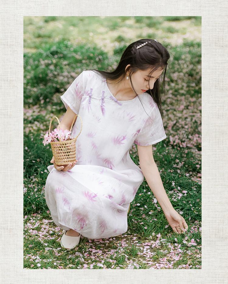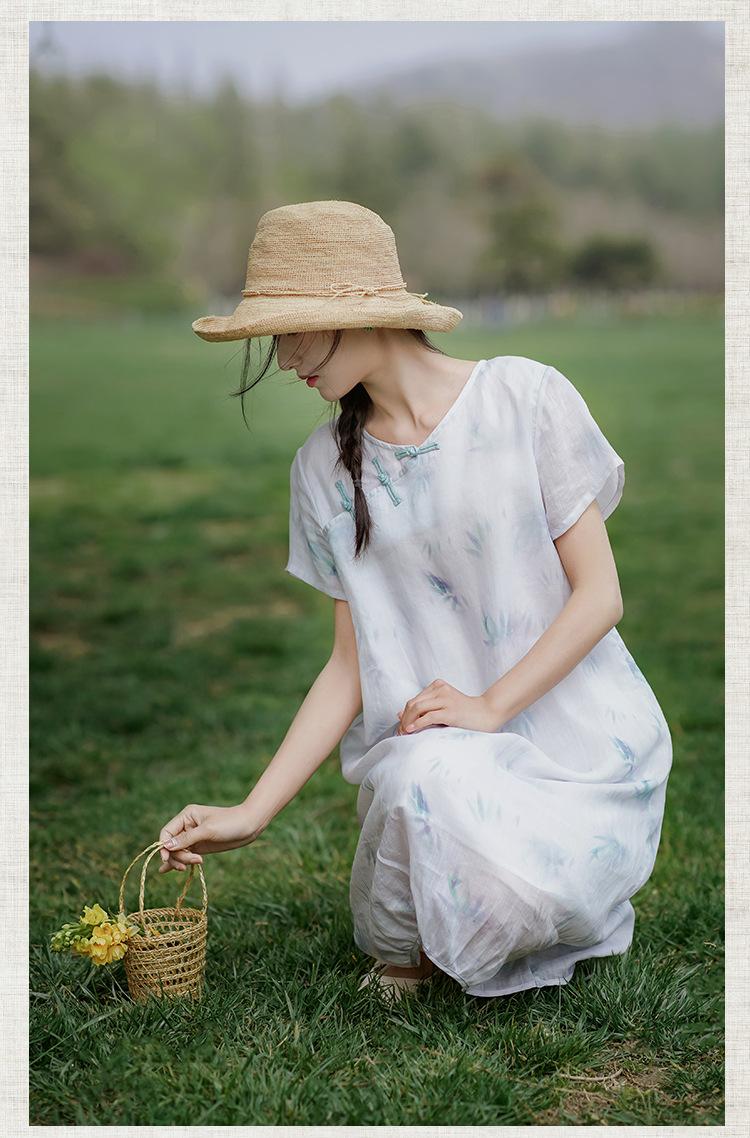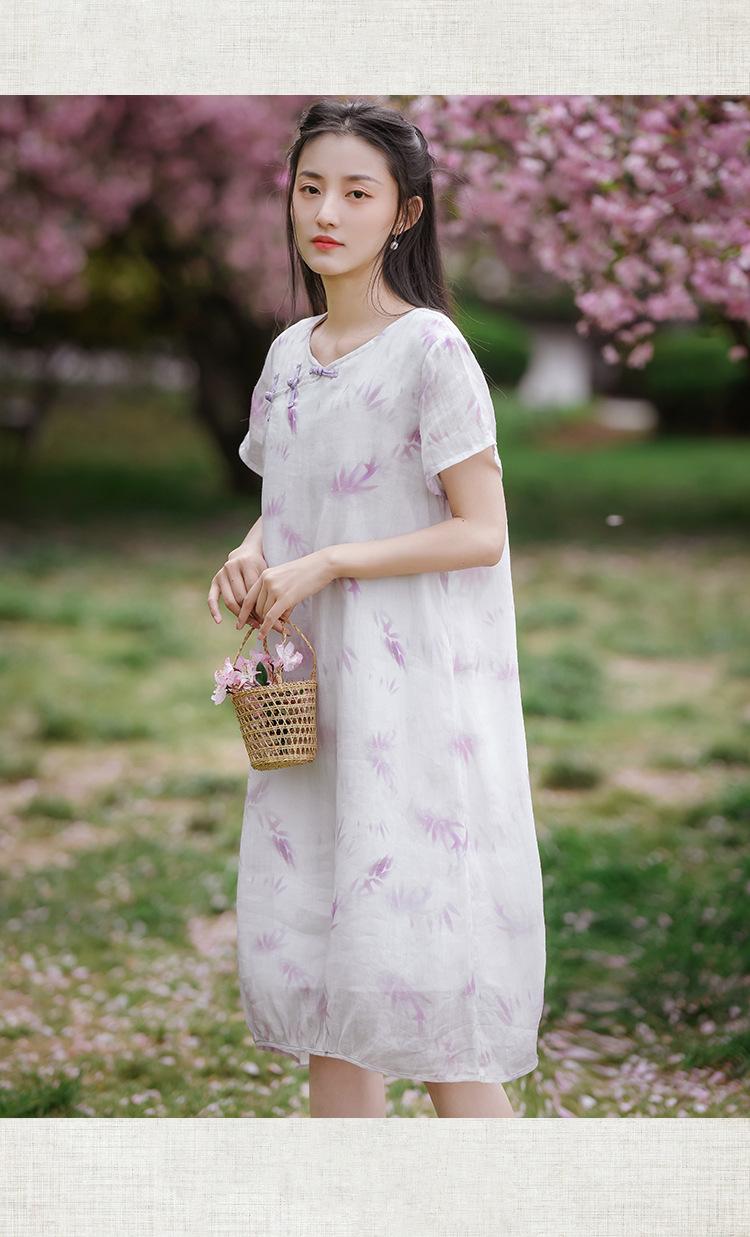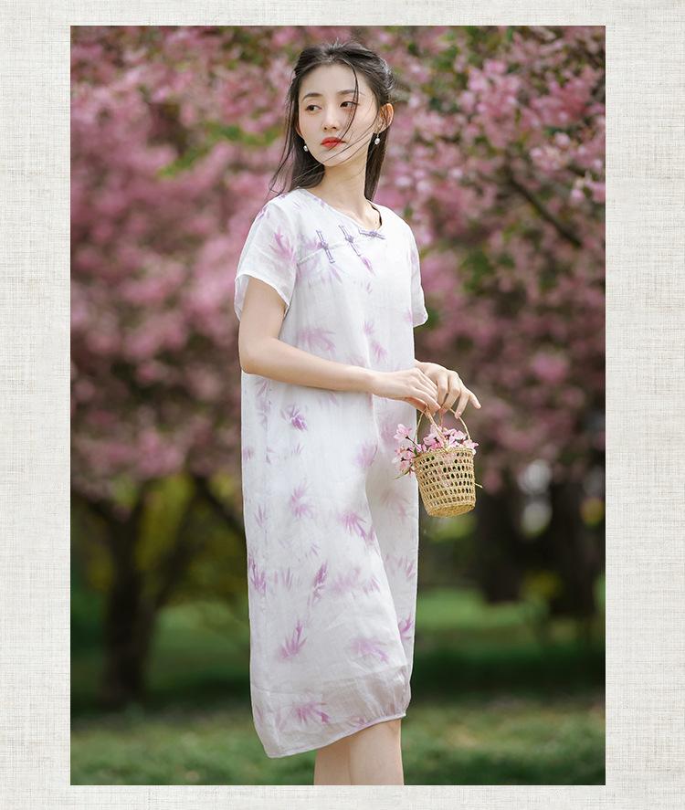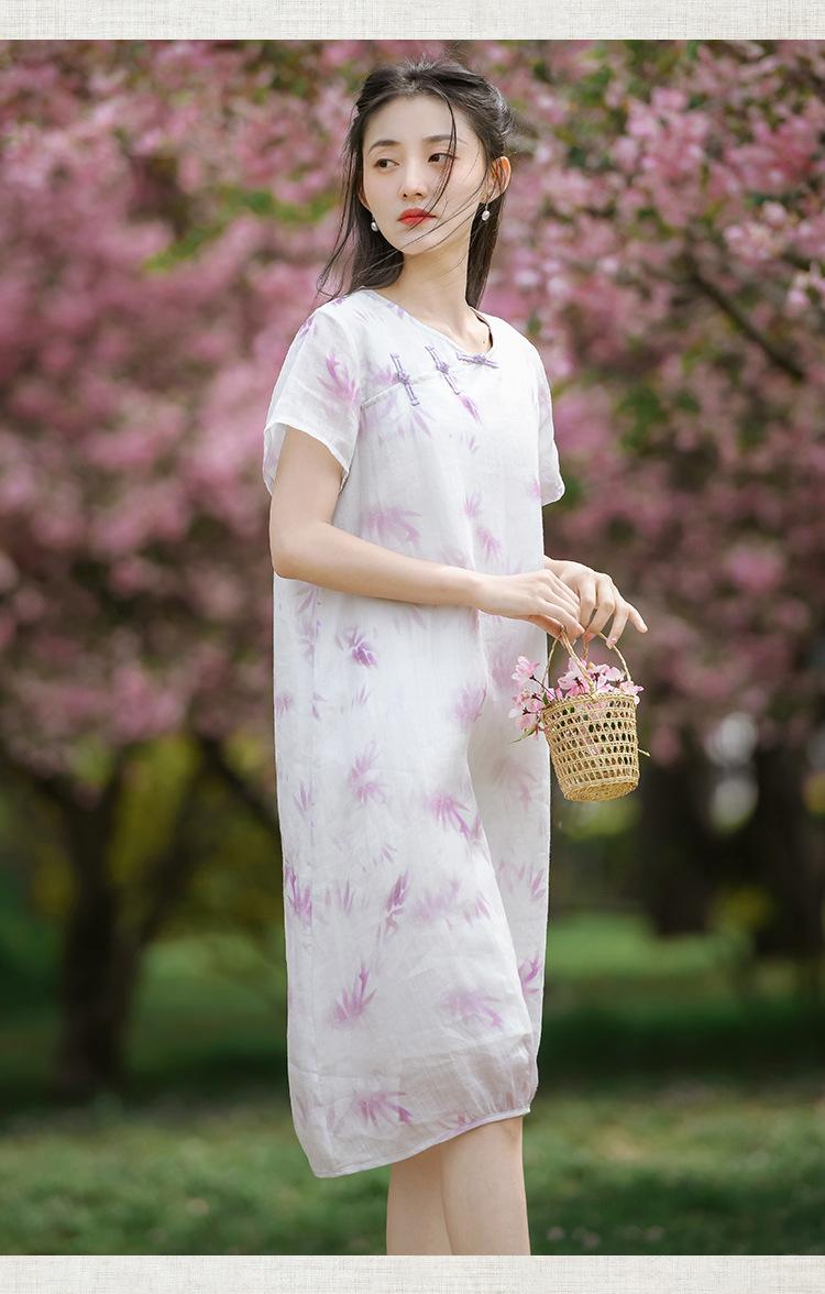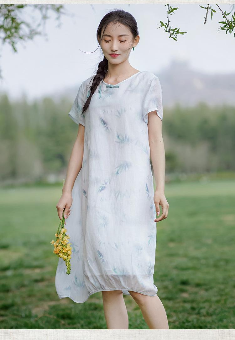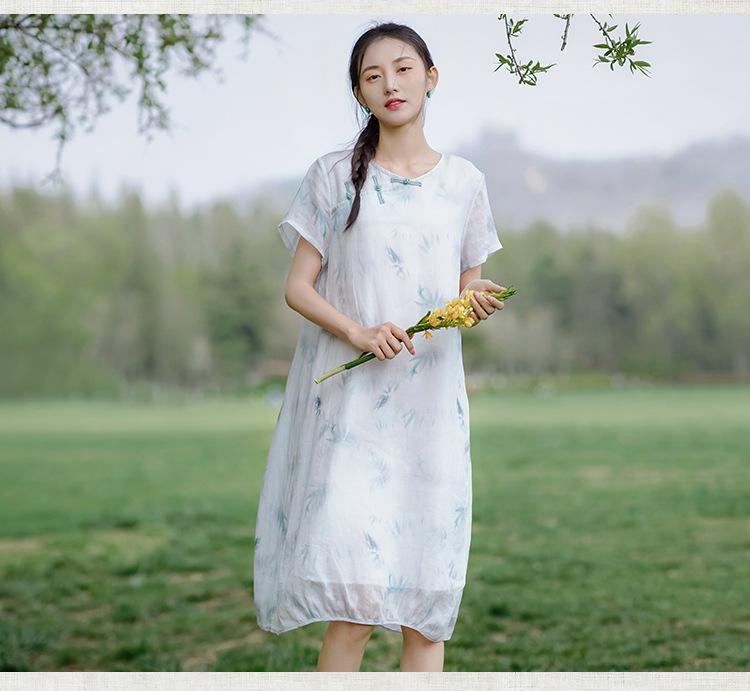 Ropa de mujer de algodón y lino 2023, nuevo vestido de manga corta para mujer, nuevo estilo chino de verano, cheongsam modificado, ramio, estilo nacional, ropa de té