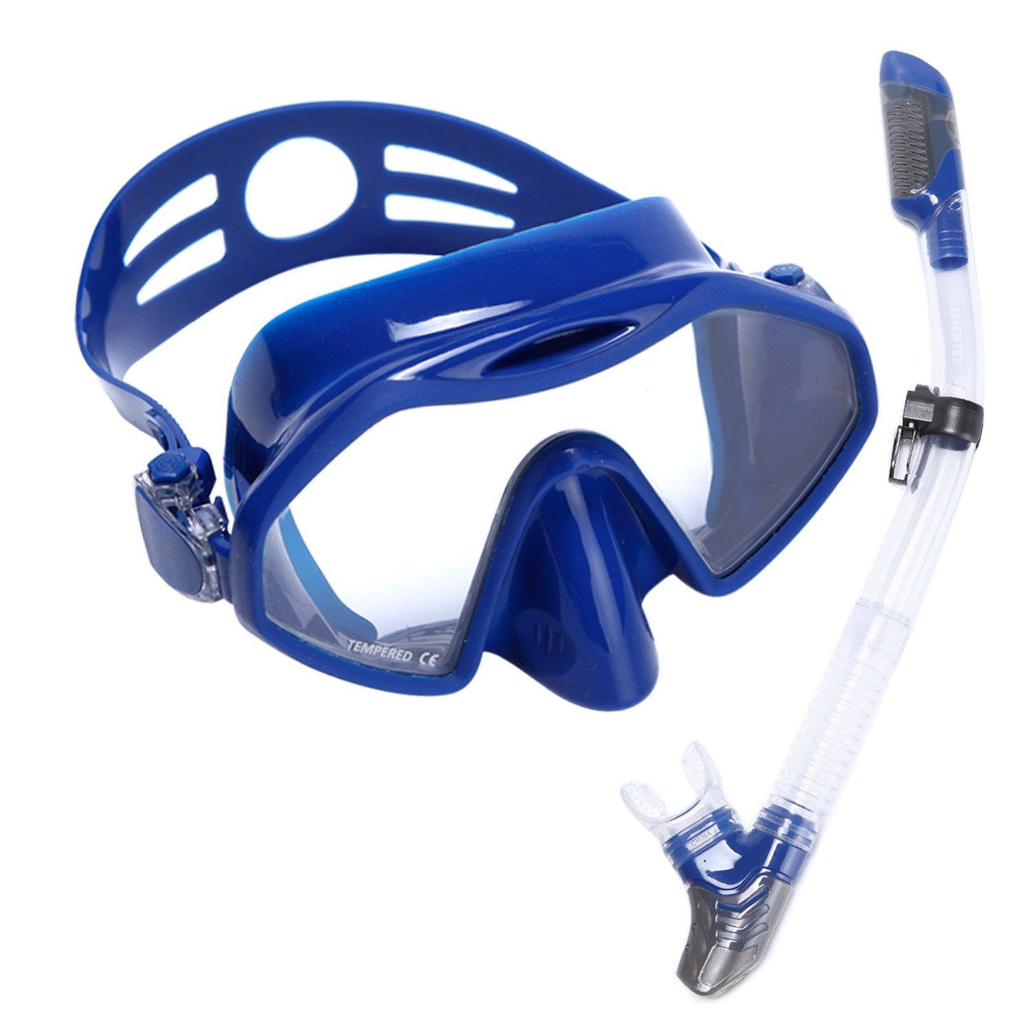 Traje de snorkel para adultos, gafas de buceo, gafas de buceo de vidrio templado, tubo de respiración completamente seco.