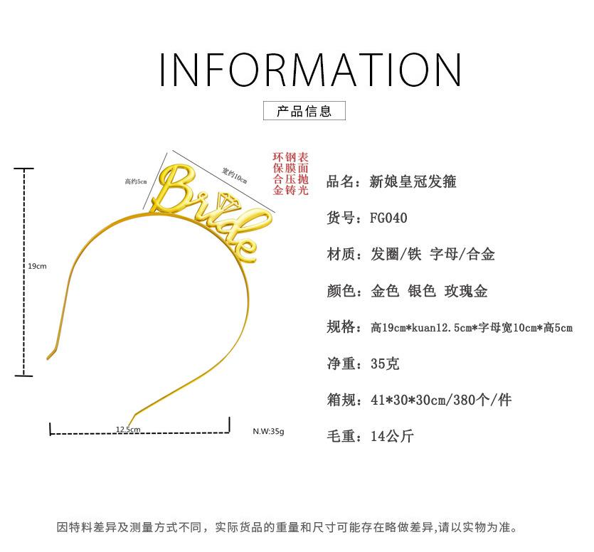 | Fabricante de tocados para novias transfronterizas, corona de novia, joyería de dama de honor, diadema con letras, accesorios para el cabello, acepta personalización |