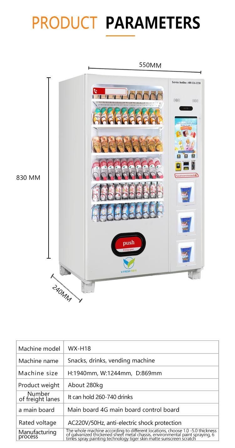 Máquina Expendedora de Autoservicio, Máquina Expendedora No Tripulada, Exportación Exportación, Máquina Expendedora Totalmente Automática, Máquina Expendedora de Snacks y Bebidas para Centro Comercial