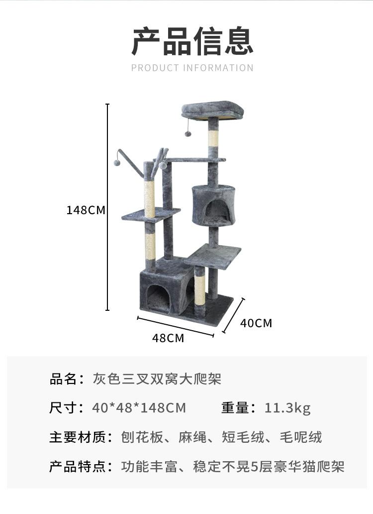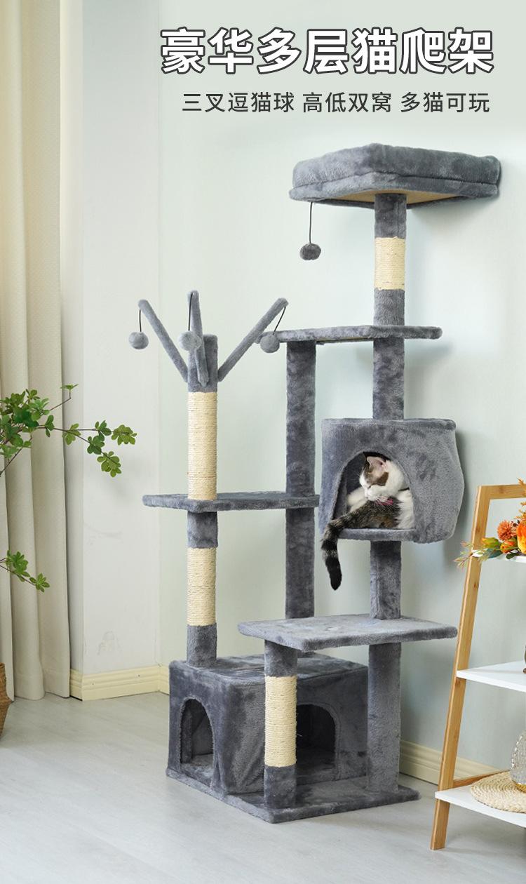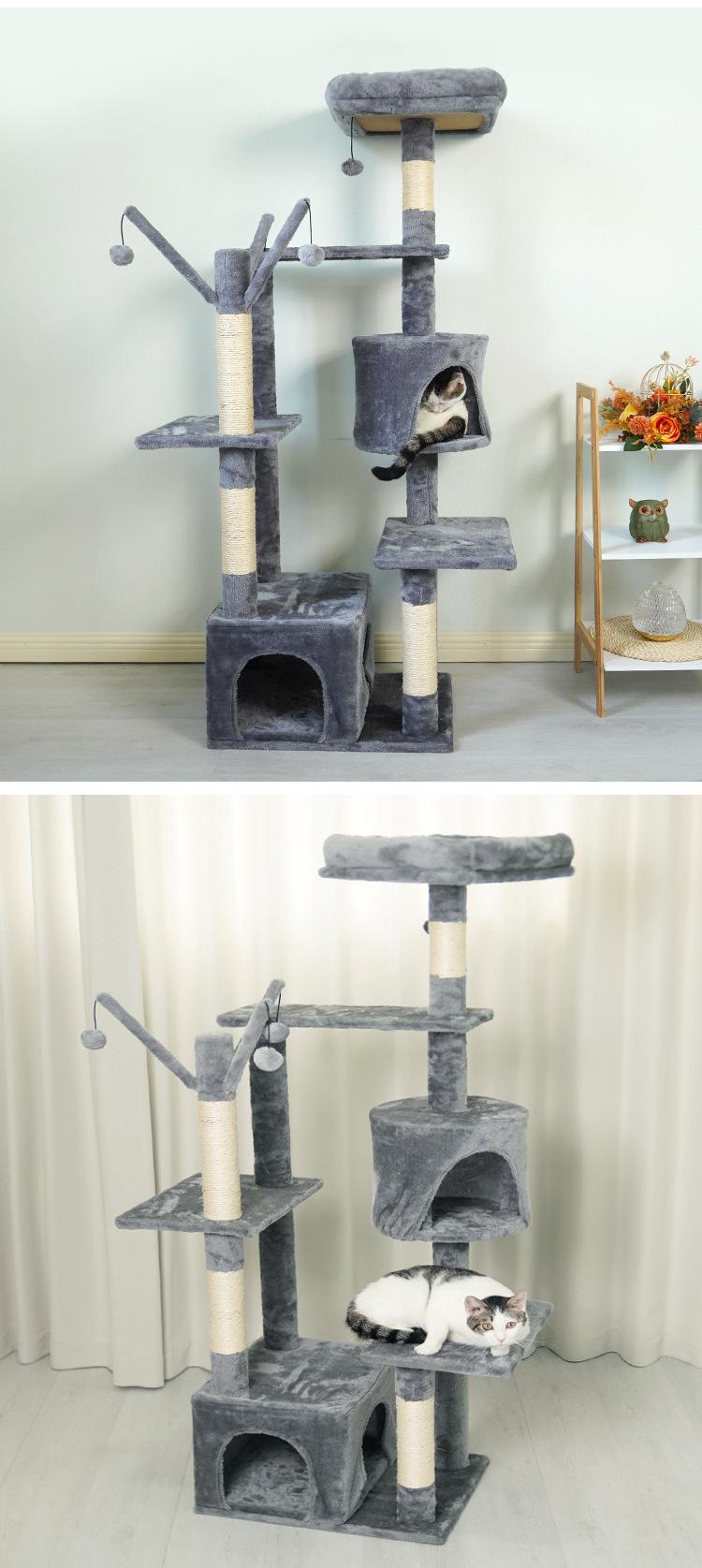 Rascador para gatos personalizado Nido para gatos Árbol para gatos Columna rascadora de sisal integrada Villa Plataforma para saltar Torre grande para gatos no ocupa suministros para gatos