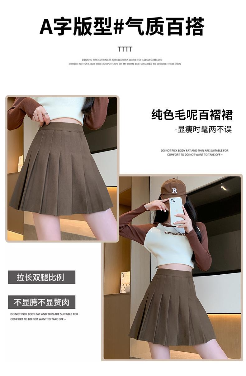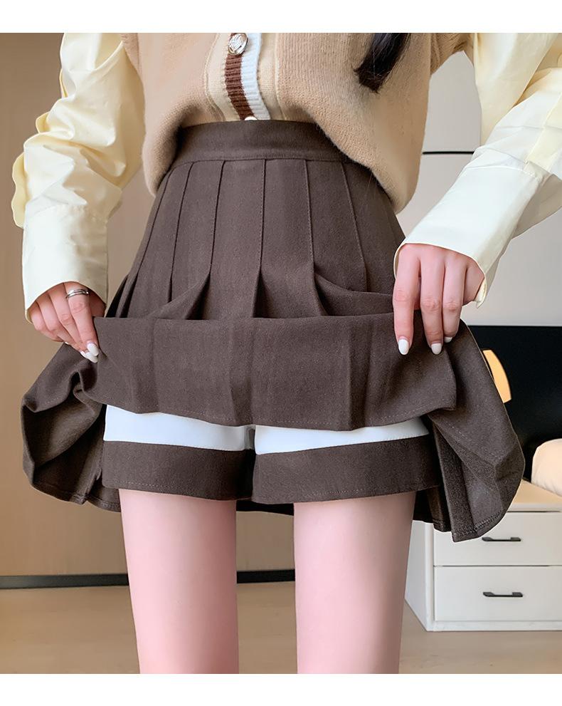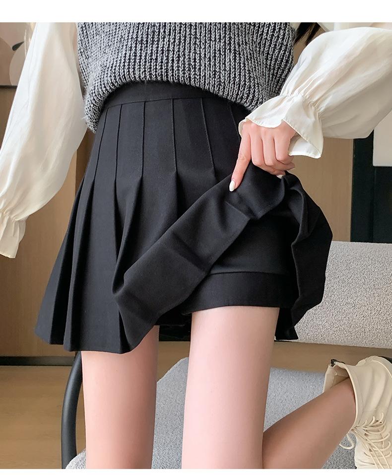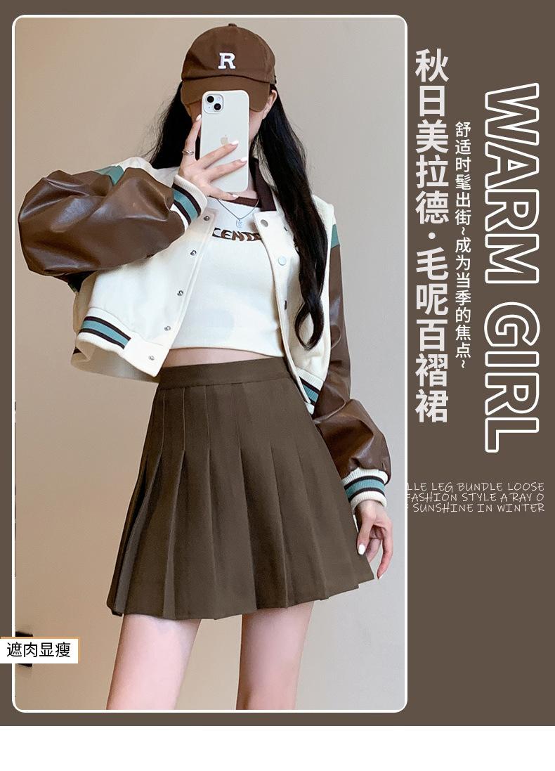 Pantalón Falda de Lana con Bolsillo de Solapa para Mujer Otoño e Invierno Nuevo Falda Plisada Gruesa y Versátil de Cintura Alta Slim Retro