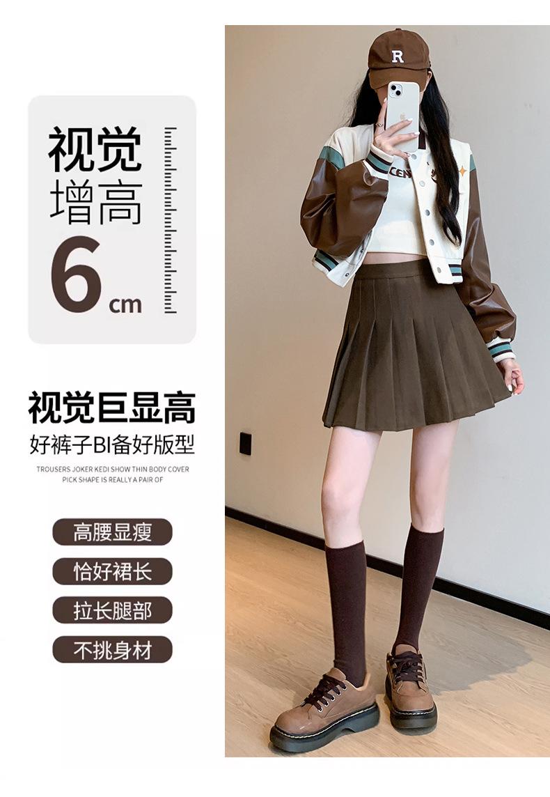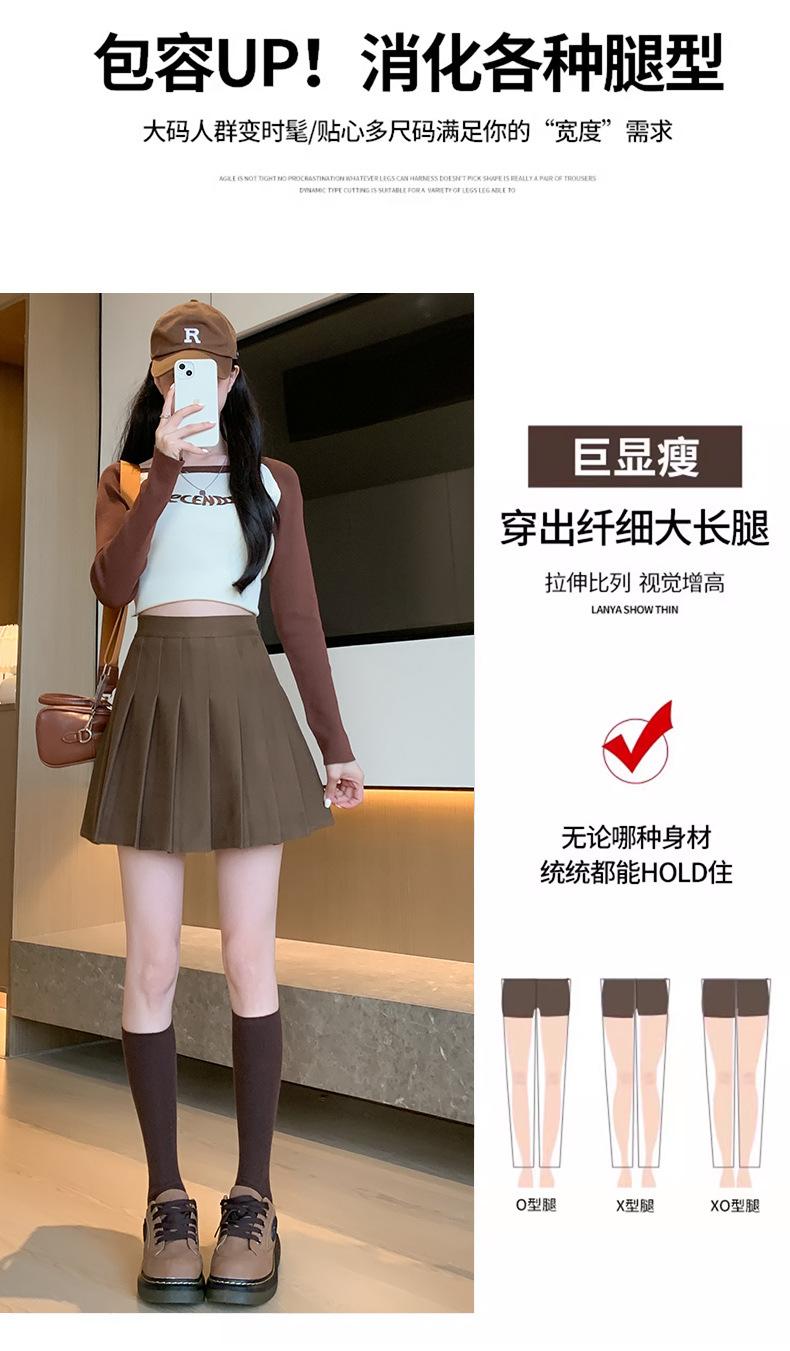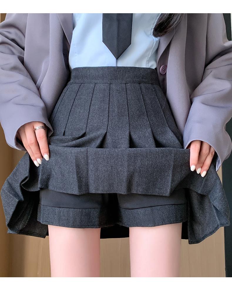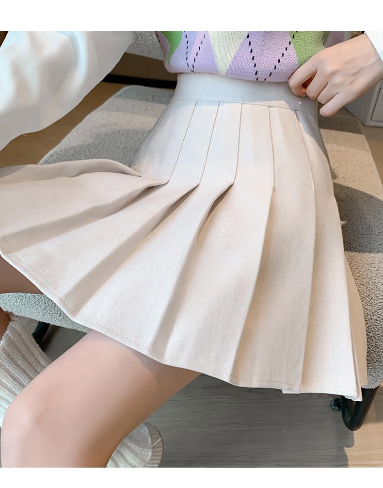 Pantalón Falda de Lana con Bolsillo de Solapa para Mujer Otoño e Invierno Nuevo Falda Plisada Gruesa y Versátil de Cintura Alta Slim Retro