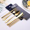 Nuevo juego de vajilla portátil para exteriores de Amazon, de acero inoxidable, con cuchillo, tenedor, cuchara y palillos de paja, personalizado.
