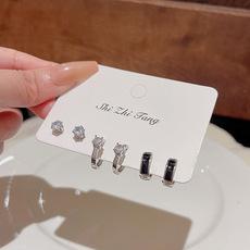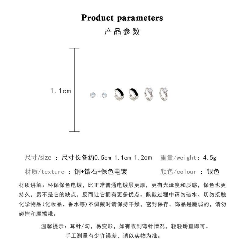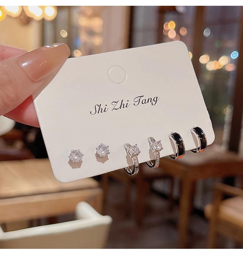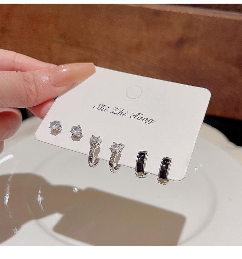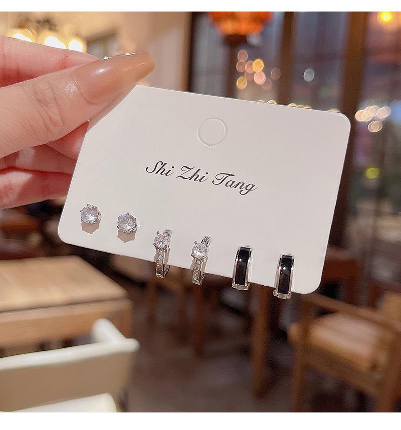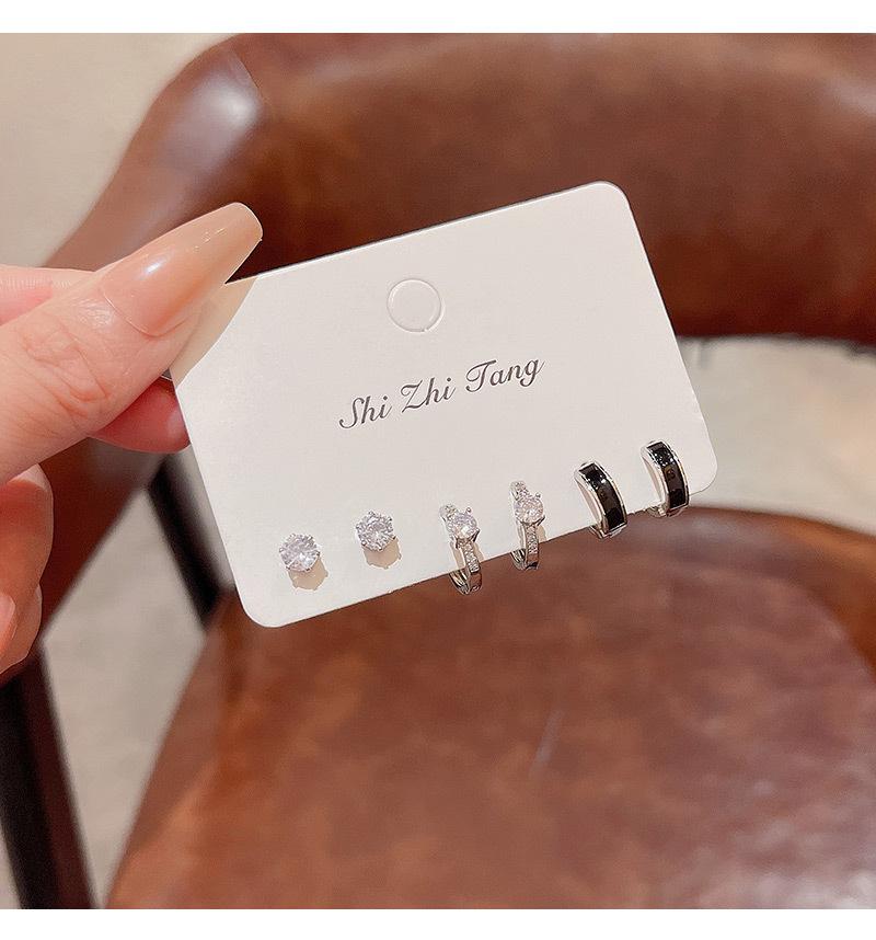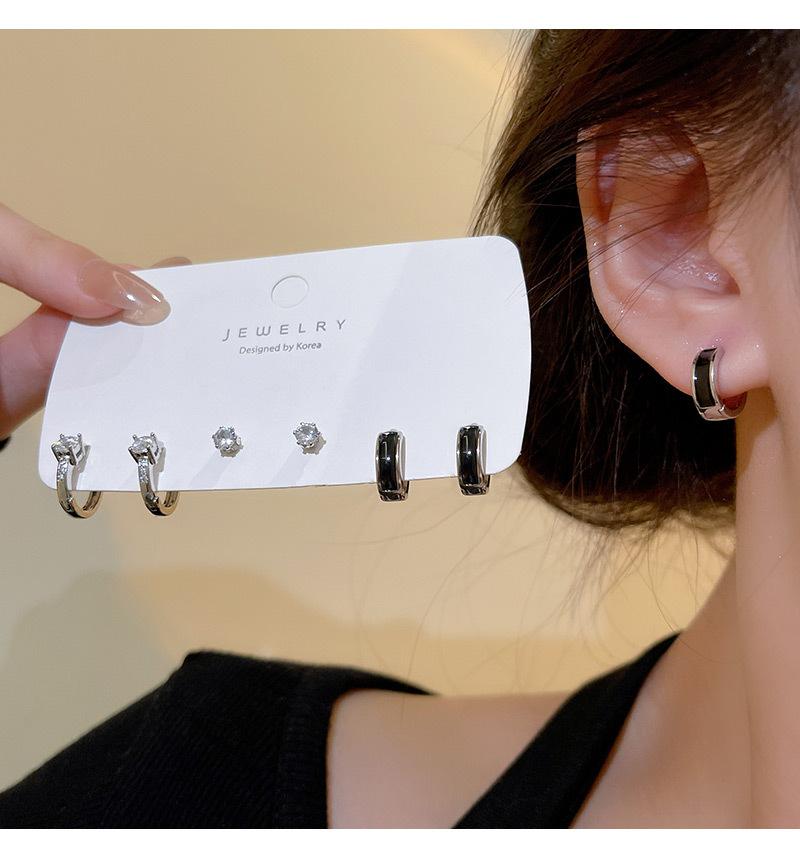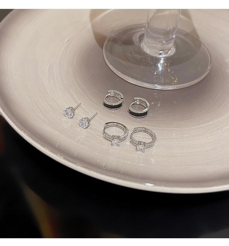 Aguja de Plata S925 Nuevo Set Coreano Aretes Simples de Zirconia Aretes Negros Colgantes Esmaltados Aretes Aretes Aretes Exquisitos