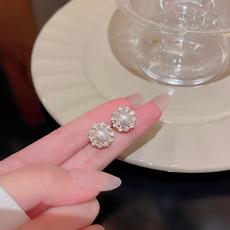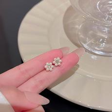 Aretes de plata 925 simples mini pequeños de perlas para mujer moda ins estudiante lindos pequeños frescos versátiles temperamento