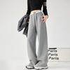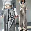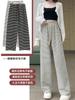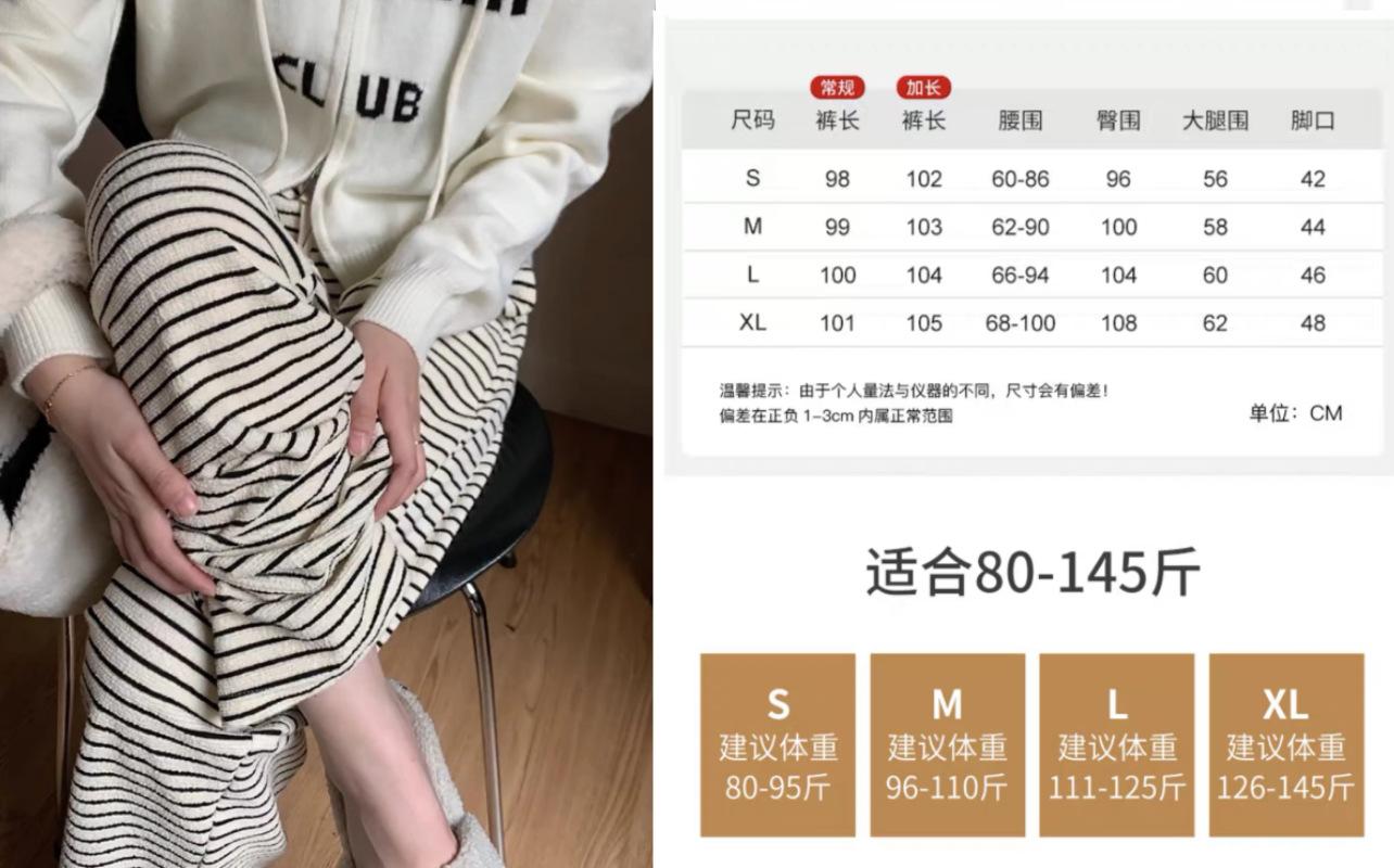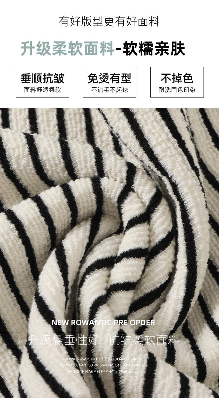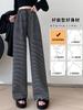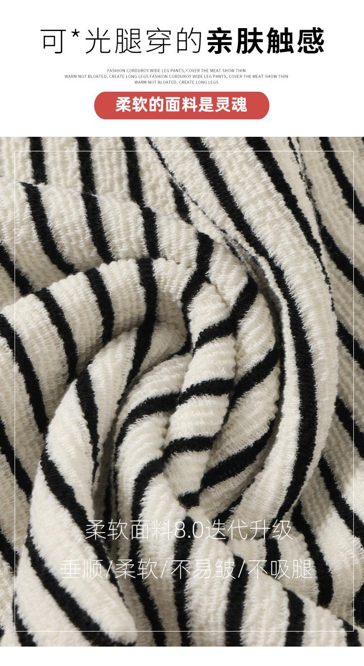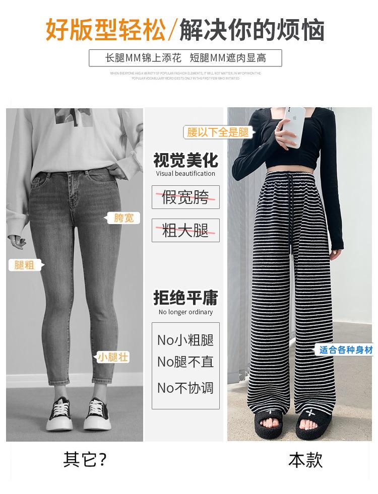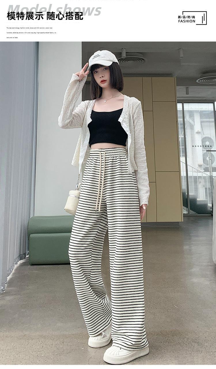 Pantalones de Terciopelo Terry a Rayas Blancas y Negras de Pierna Ancha para Mujer Otoño e Invierno Nuevo Cintura Alta Sueltos con Cordón Deportivo Drapeado Crema Pantalones Casuales