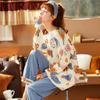Pijama de algodón puro para mujer, traje de pantalón de manga larga de primavera y otoño, estilo ins de dibujos animados lindo y dulce, ropa para el hogar que las mujeres pueden usar al aire libre.