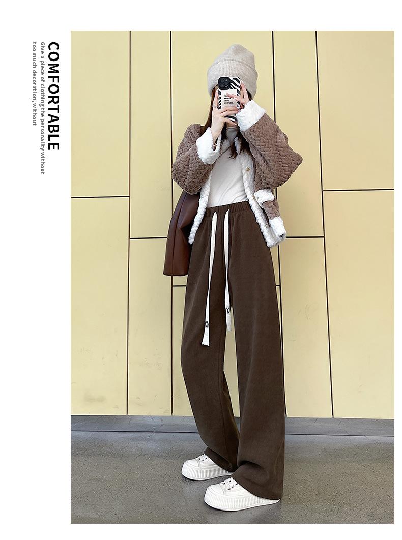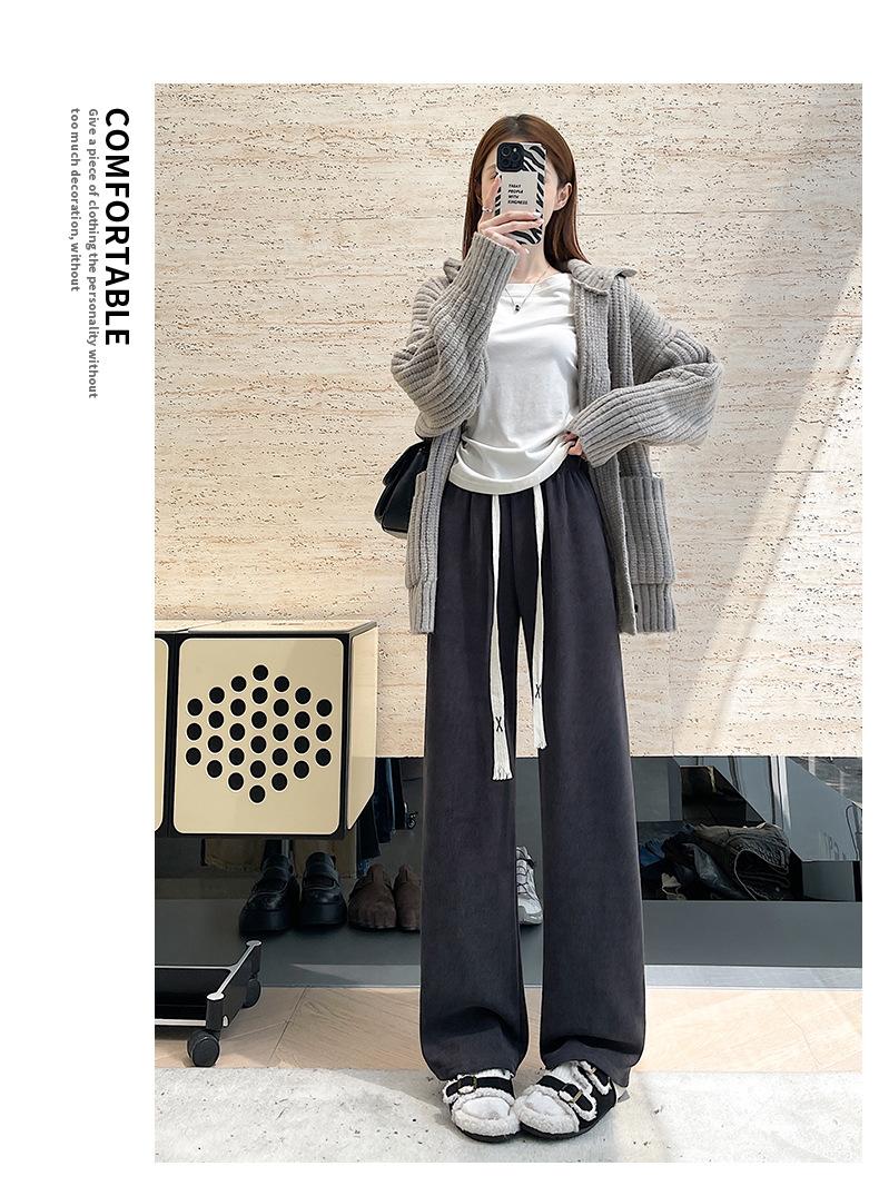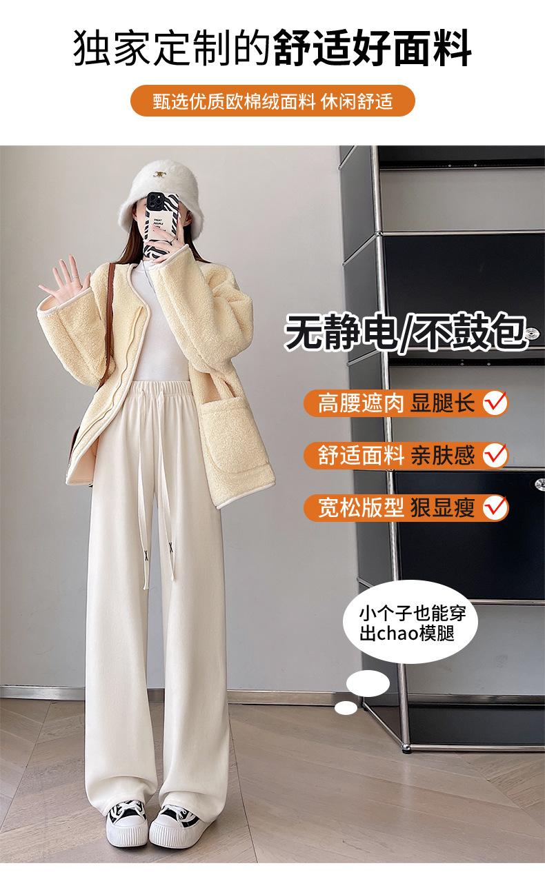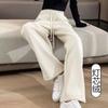 Pantalones de Chenilla de Pierna Ancha para Mujer Otoño e Invierno 2025 Nuevo Corte Estrecho Recto Suelto Casual Largo hasta el Piso Pantalones Deportivos Grises