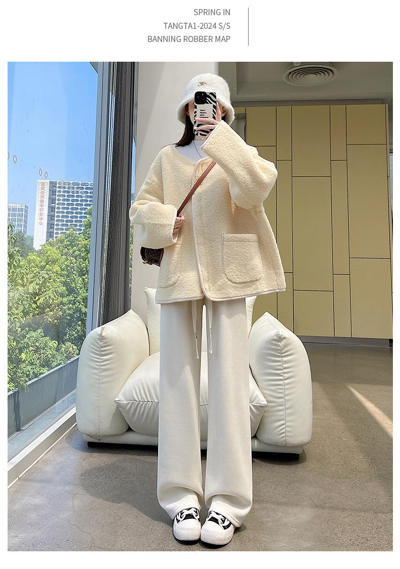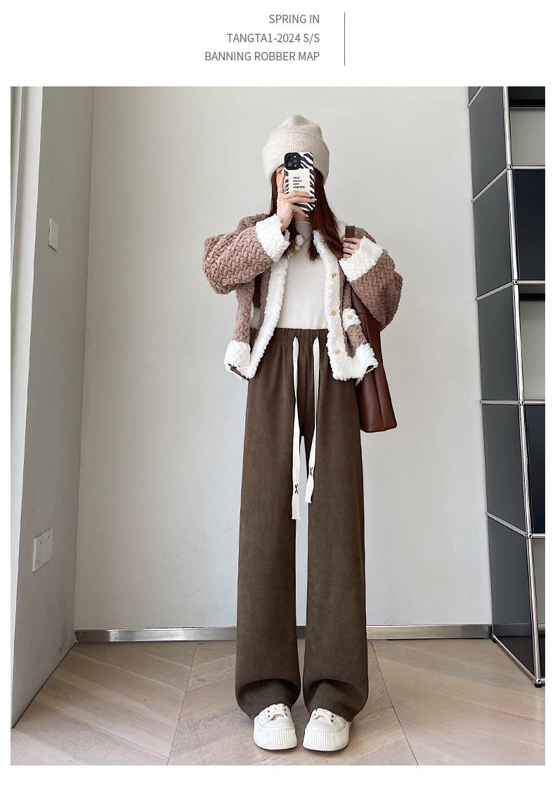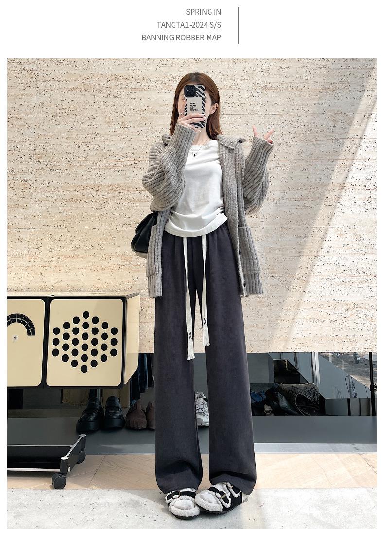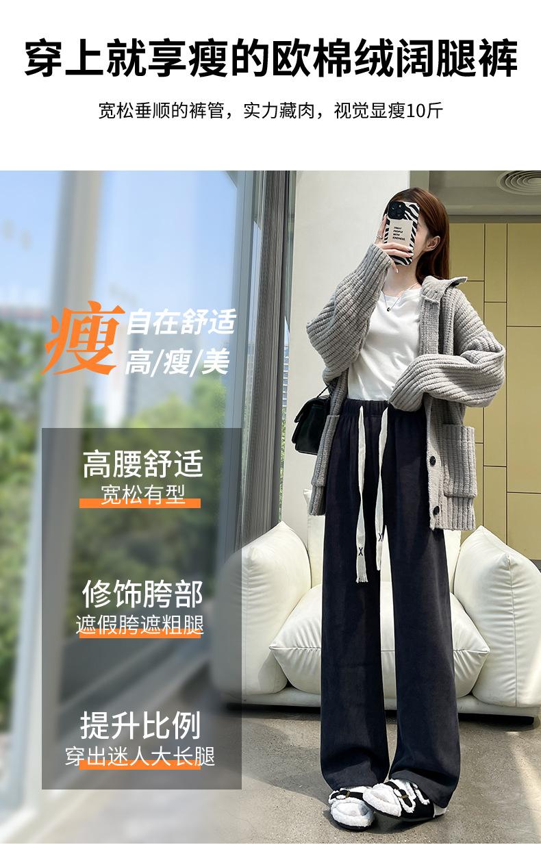 Pantalones de Chenilla de Pierna Ancha para Mujer Otoño e Invierno 2025 Nuevo Corte Estrecho Recto Suelto Casual Largo hasta el Piso Pantalones Deportivos Grises
