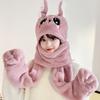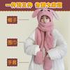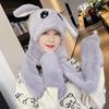 Gorro Otoño e Invierno para Mujer Combinable Orejas de Conejo Movibles Felpa Lindo Guantes Bufanda Conjunto de Tres Piezas Cálido Moda