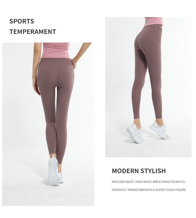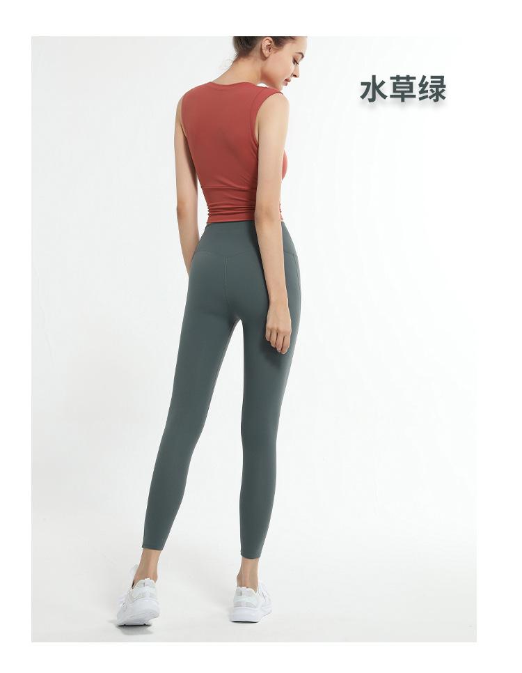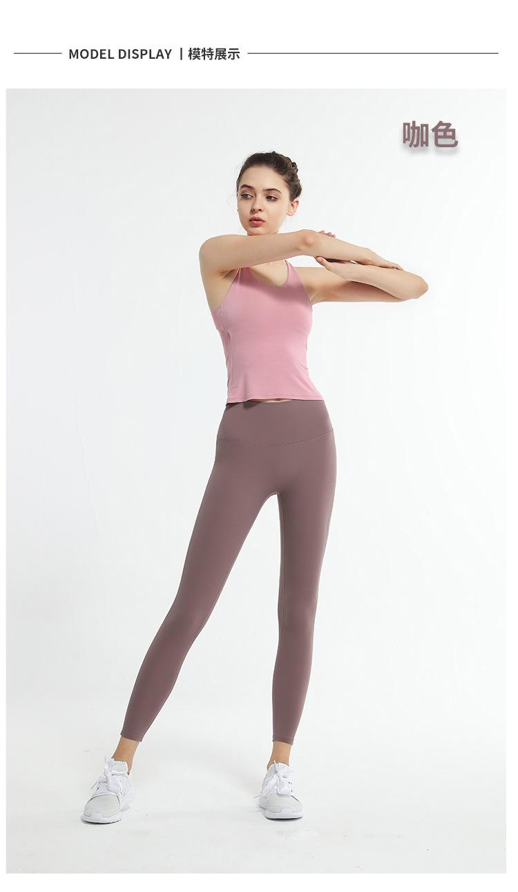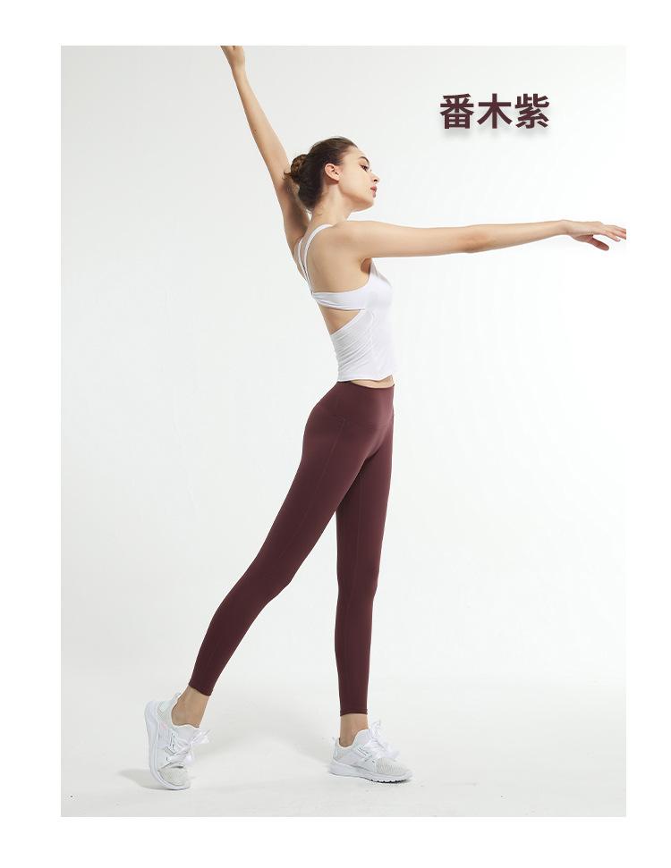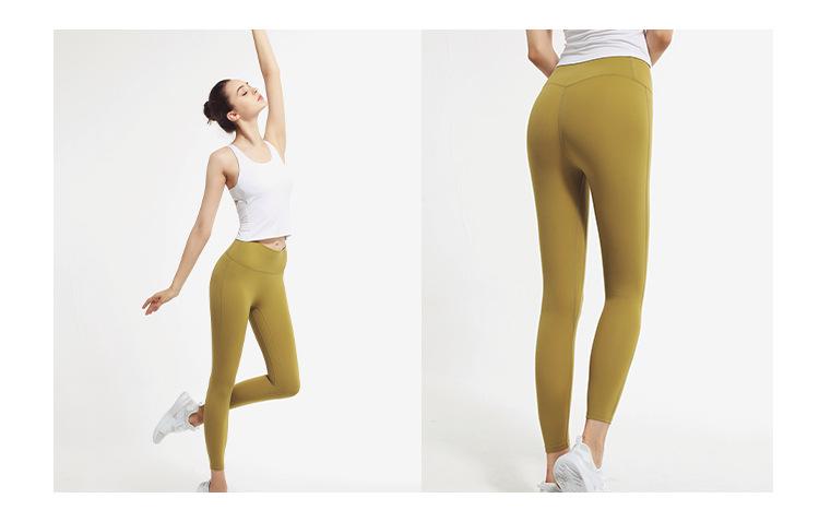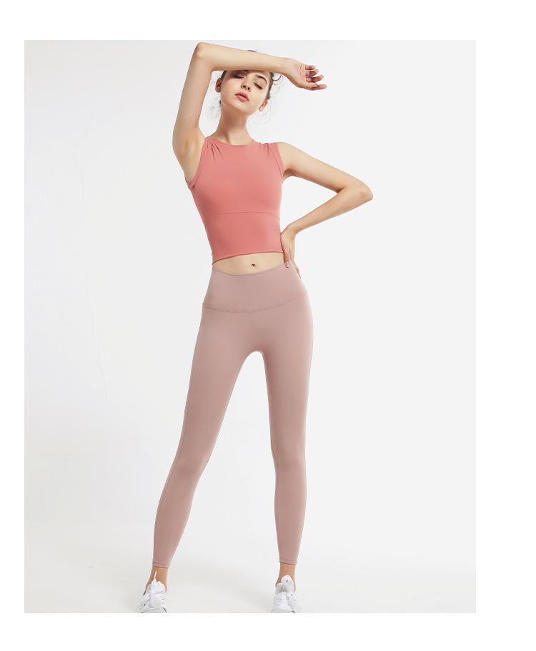Pantalones ajustados color melocotón nude para entrenamiento de baile, yoga, deportivos y fitness elásticos de nueve puntos para mujer.