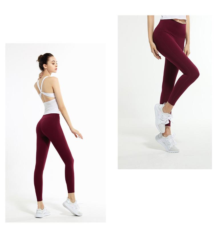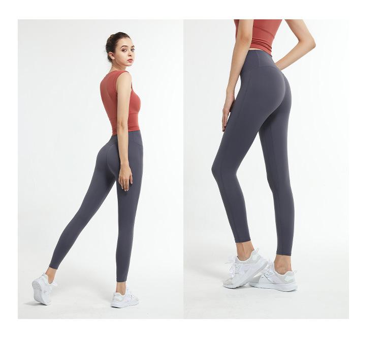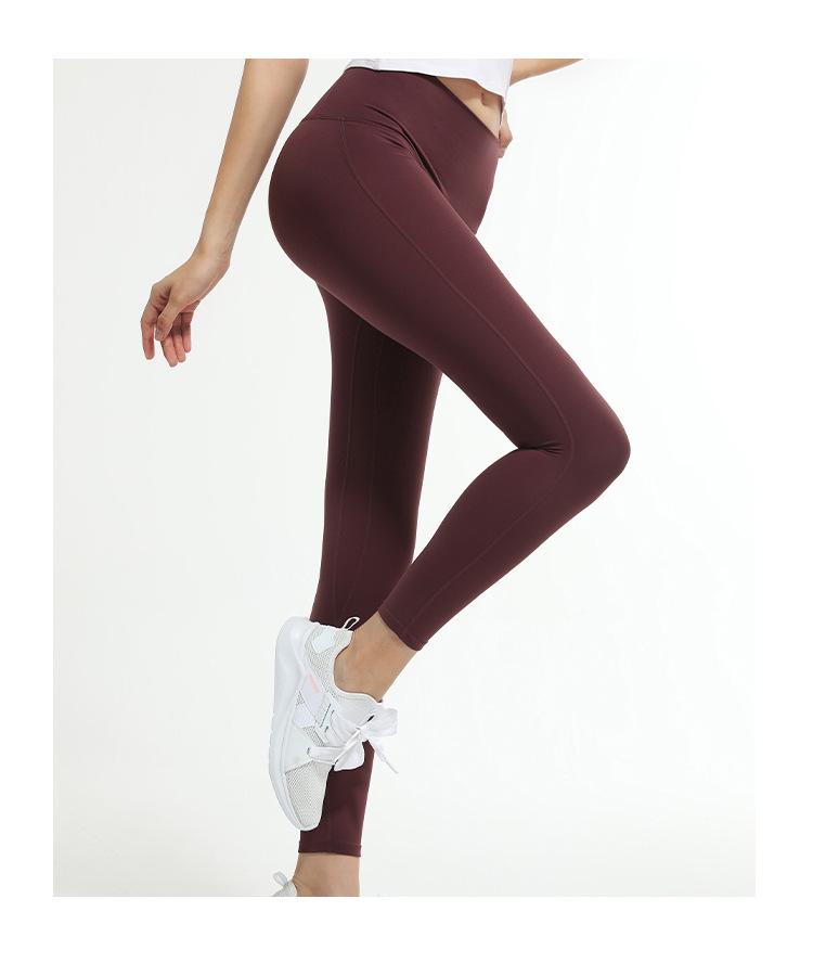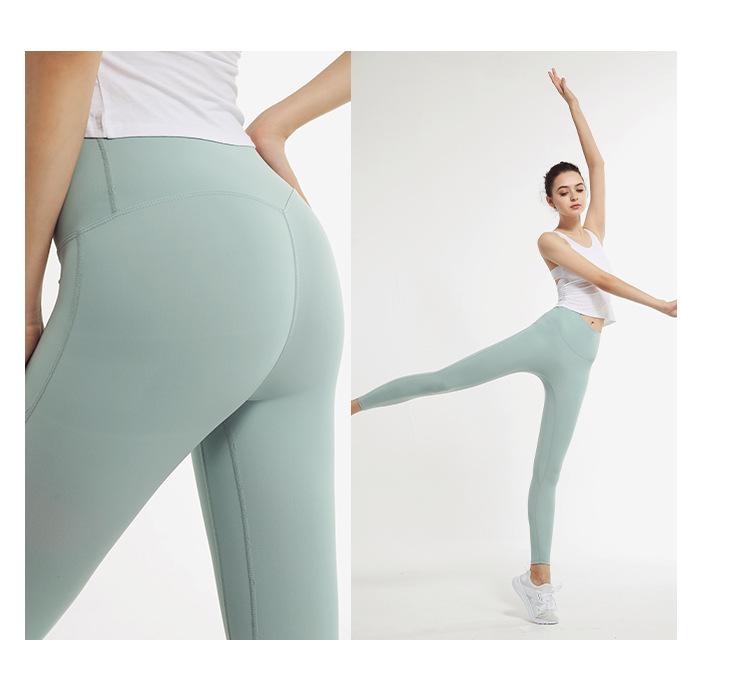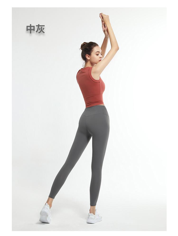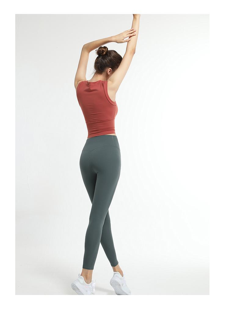 Pantalones ajustados color melocotón nude para entrenamiento de baile, yoga, deportivos y fitness elásticos de nueve puntos para mujer.