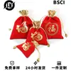 Bolsa con cordón de Terciopelo Rojo con Ribete Dorado para Bendiciones de Año Nuevo, Joyería y Regalos de Dulces de Boda