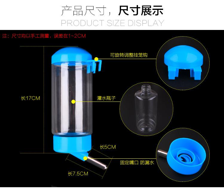 1. Este producto está diseñado exclusivamente por expertos. Apriete la tapa después de llenarlo con agua. Si gotea agua, llene la botella con agua hasta el borde de una vez y luego cuélguela en la jaula.