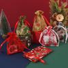 Bolsa de hilo de regalo de Navidad de organza bronceada fruncida, color del cordón ajustable personalizable, bolsa de dulces navideños