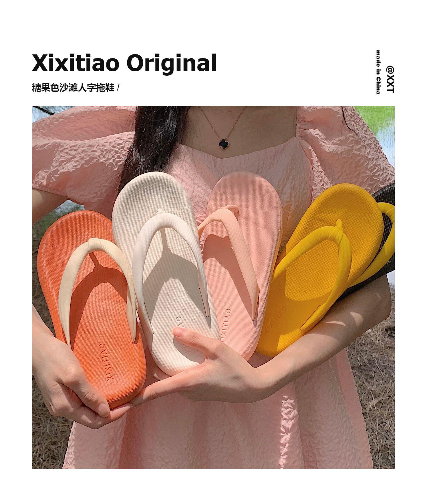 Sandalias de Playa de Verano para Mujer con Suela Blanda, Pantuflas de Moda Personalizadas, Chanclas de Suela Plana Color Caramelo