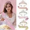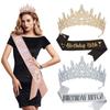 Cinturón de etiqueta con correa de hombro para fiesta de cumpleaños, cinturón de tela con purpurina y cinta para princesa de cumpleaños   Corona nupcial para fiesta de bodas, moda de princesa, peine, corona, diadema, corona de cristal de aleación, tiara, accesorios de fiesta   Conjunto de correa de hombro con corona para el 22.º cumpleaños, cinturón de tela brillante, cinturón de etiqueta, tiara de aleación, accesorios para el cabello, decoración de fiesta, stock listo