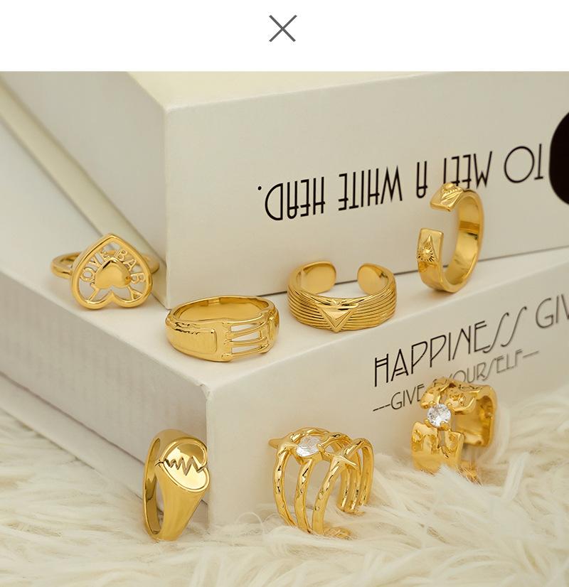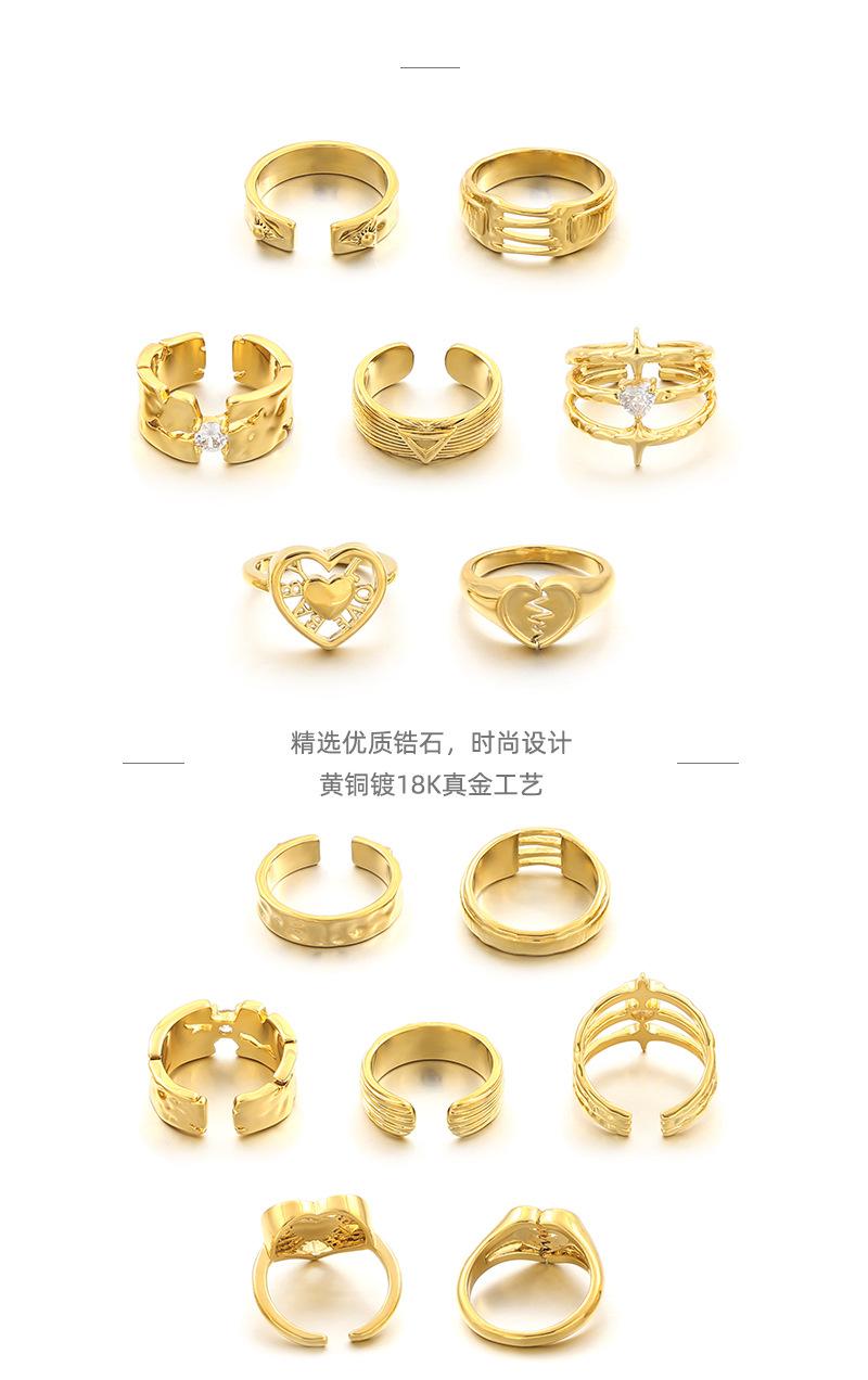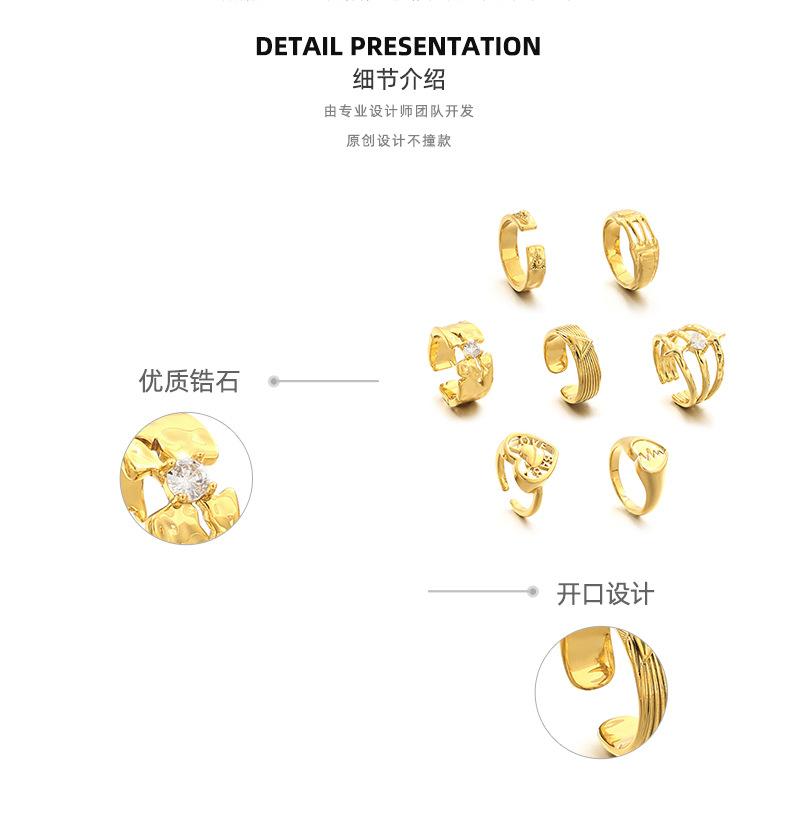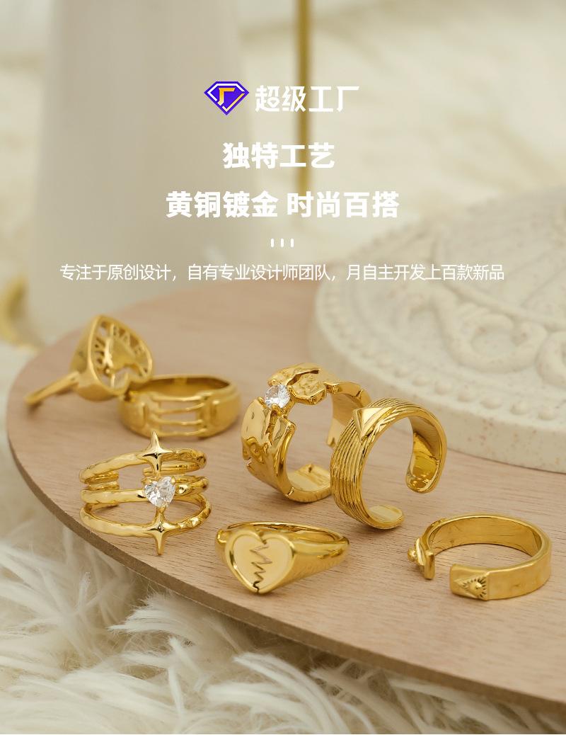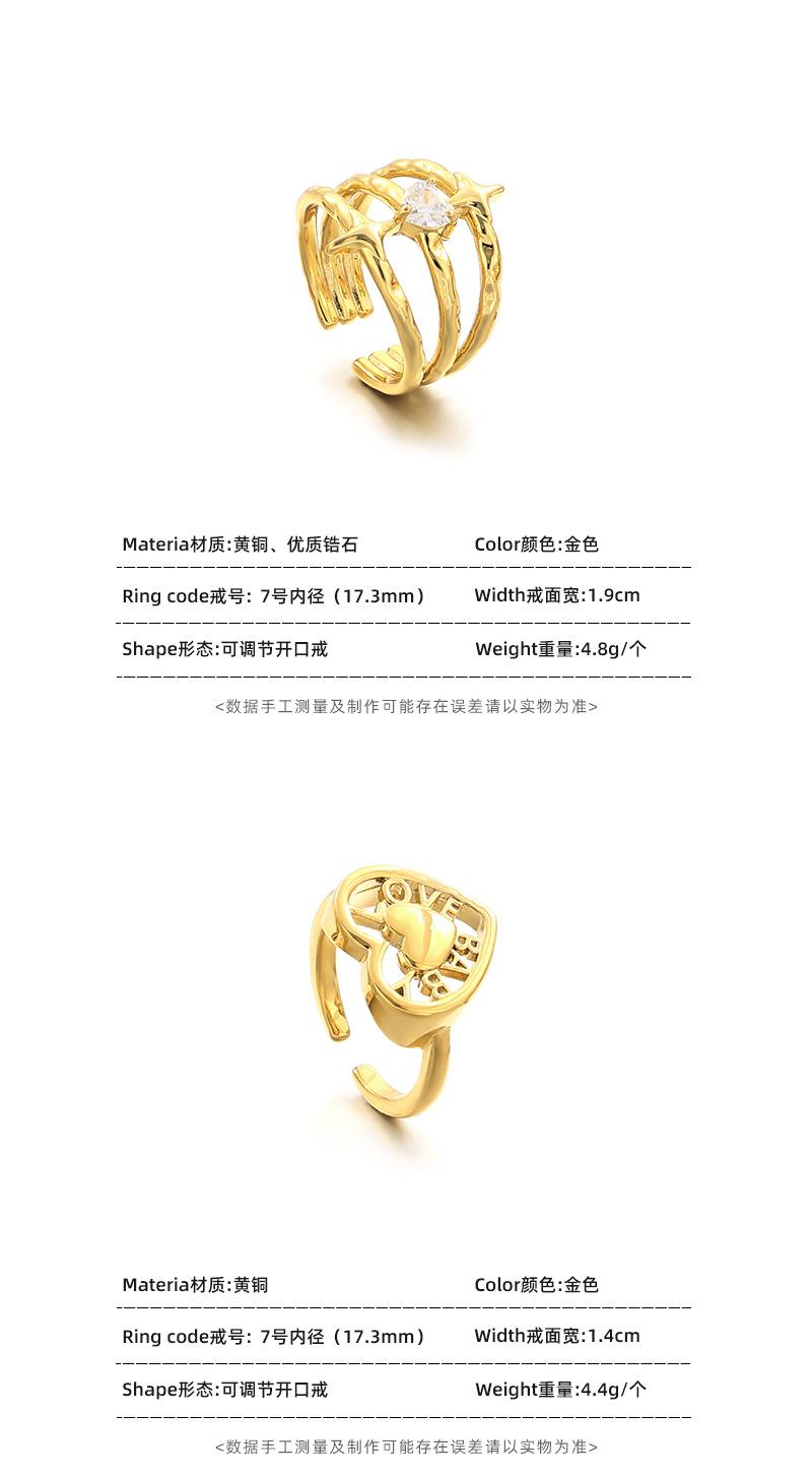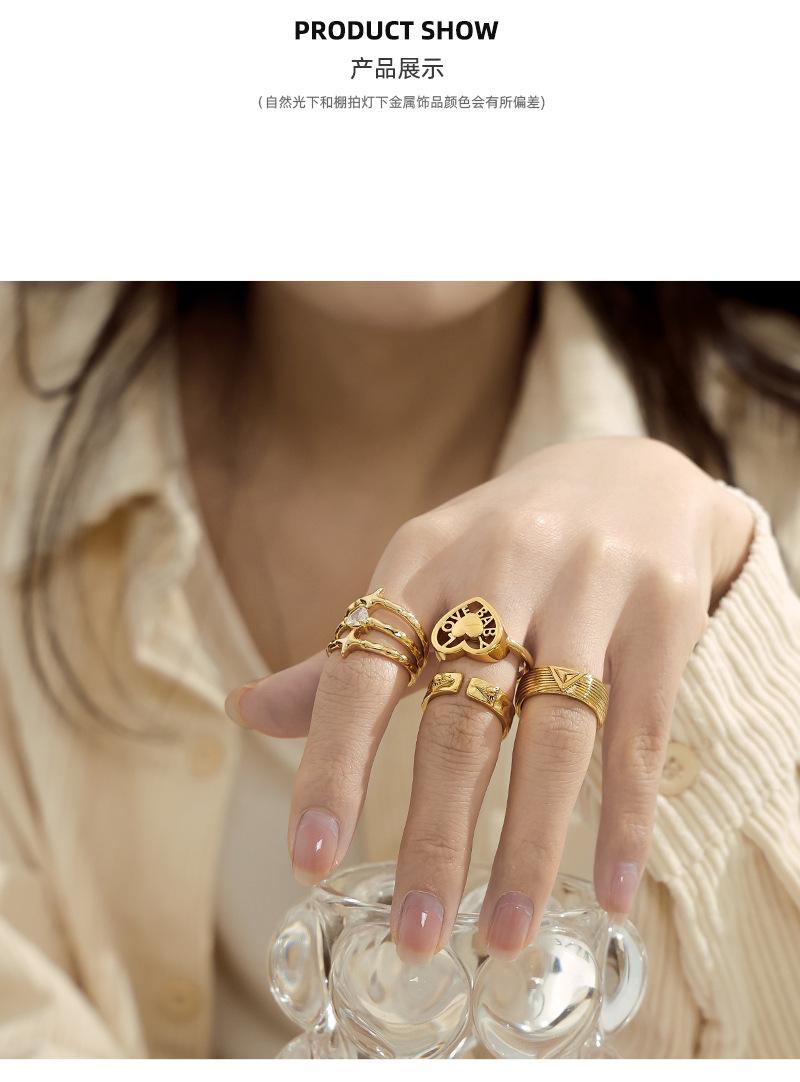Chapado al vacío de color intenso oro real europeo y americano vintage personalidad circonita incrustada hueco amor anillo abierto joyería