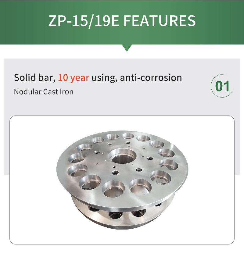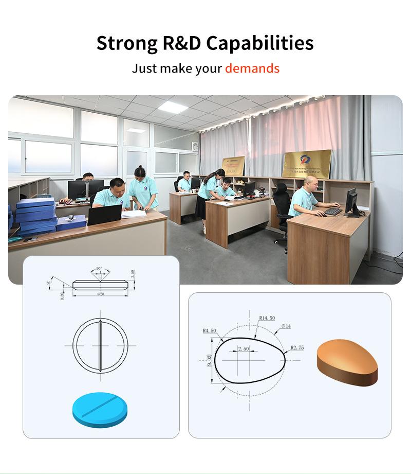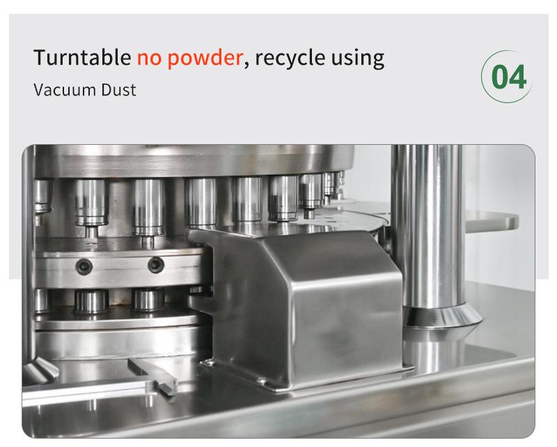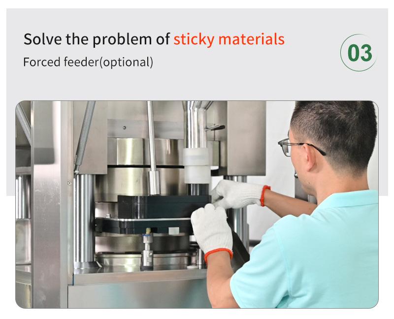 Esta prensa rotativa automática de doble tipo es una máquina de quinta generación capaz de comprimir continuamente polvos y gránulos en diversas formas, incluyendo tabletas redondas, tabletas con formas especiales, tabletas de dos colores, tabletas anulares y esferas. La prensa para tabletas efervescentes está diseñada para diámetros y espesores de tableta mayores. Con una presión máxima de 120KN, un diámetro máximo de tableteado de 50 mm y un espesor máximo de tableteado de 25 mm, ofrece los beneficios de alta presión y fácil operación. Esta maquinaria farmacéutica para prensar tabletas es la opción preferida para la producción en masa en las industrias farmacéutica, química, electrónica, alimentaria y otras. Es adecuada para prensar materiales difíciles o corrosivos y cumple con los requisitos de producción GMP.