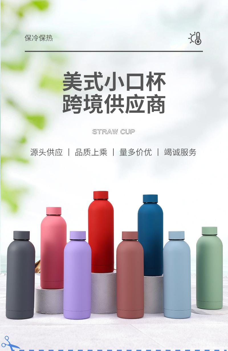 Botella termo portátil de acero inoxidable 304 de 500 ml con boca pequeña para deportes al aire libre, ideal para agua fría.