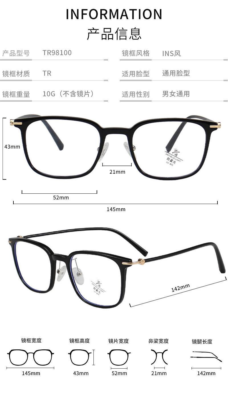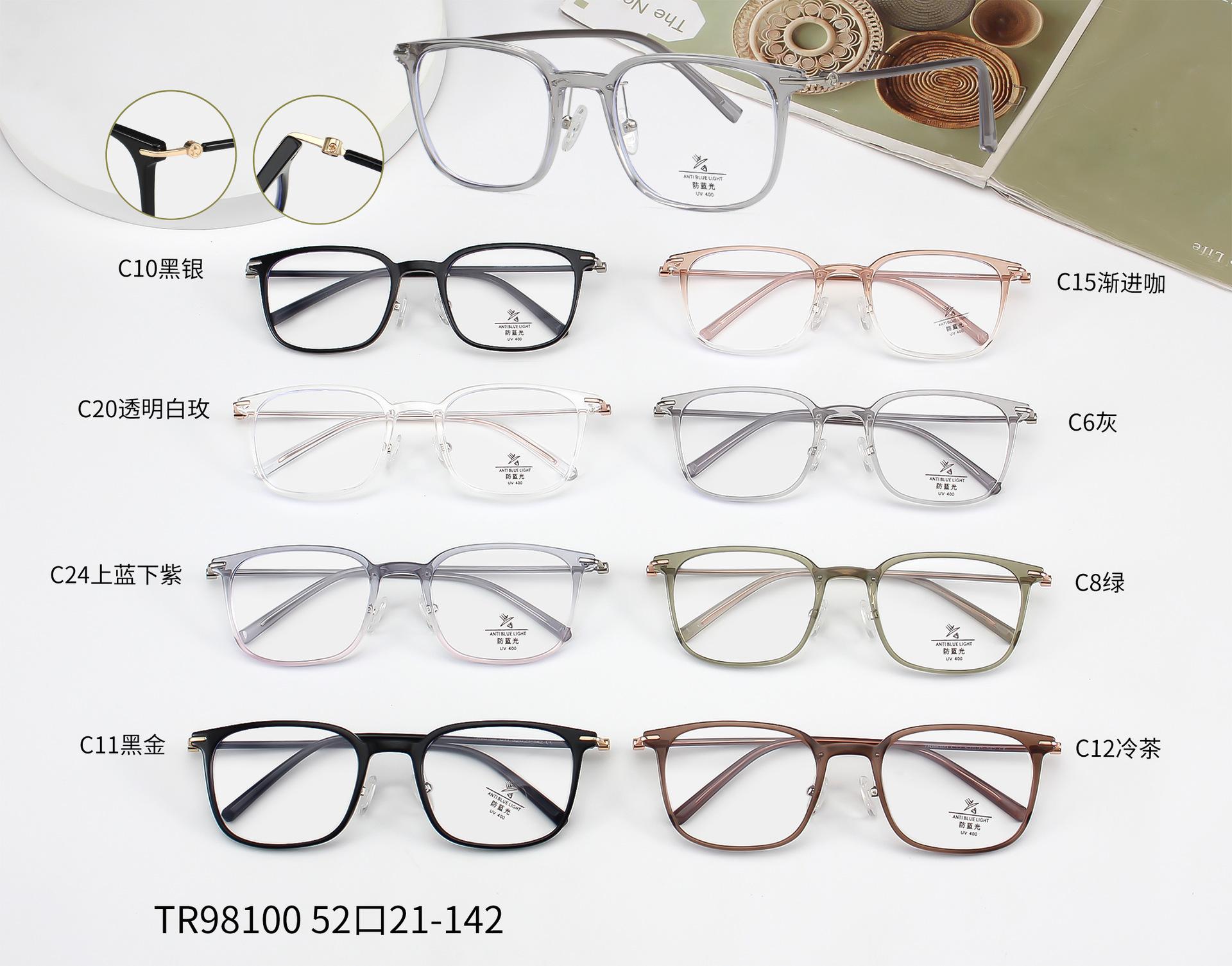 Tr98100 Nuevos Lentes de Montura Cuadrada con Estilo para Mujer, Lentes Lisos Tr Estilo Coreano, Simples y Únicos, Lentes Anti Luz Azul