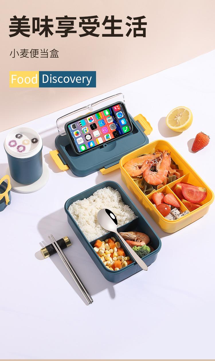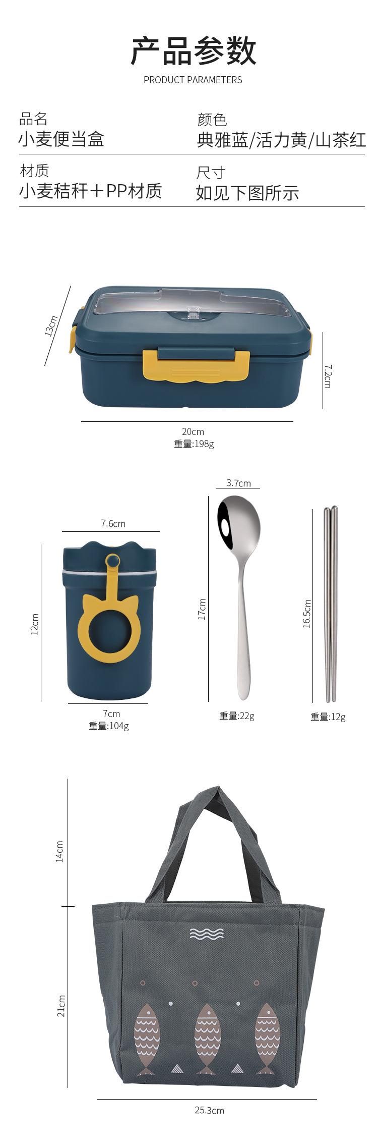 Lonchera de trigo, lonchera con compartimentos, lonchera portátil, lonchera sellada para estudiantes con compartimentos y taza de acompañamiento, estilo japonés