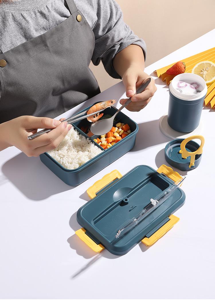 Blue lunch box + spoon chopsticks + Breakfast Cup