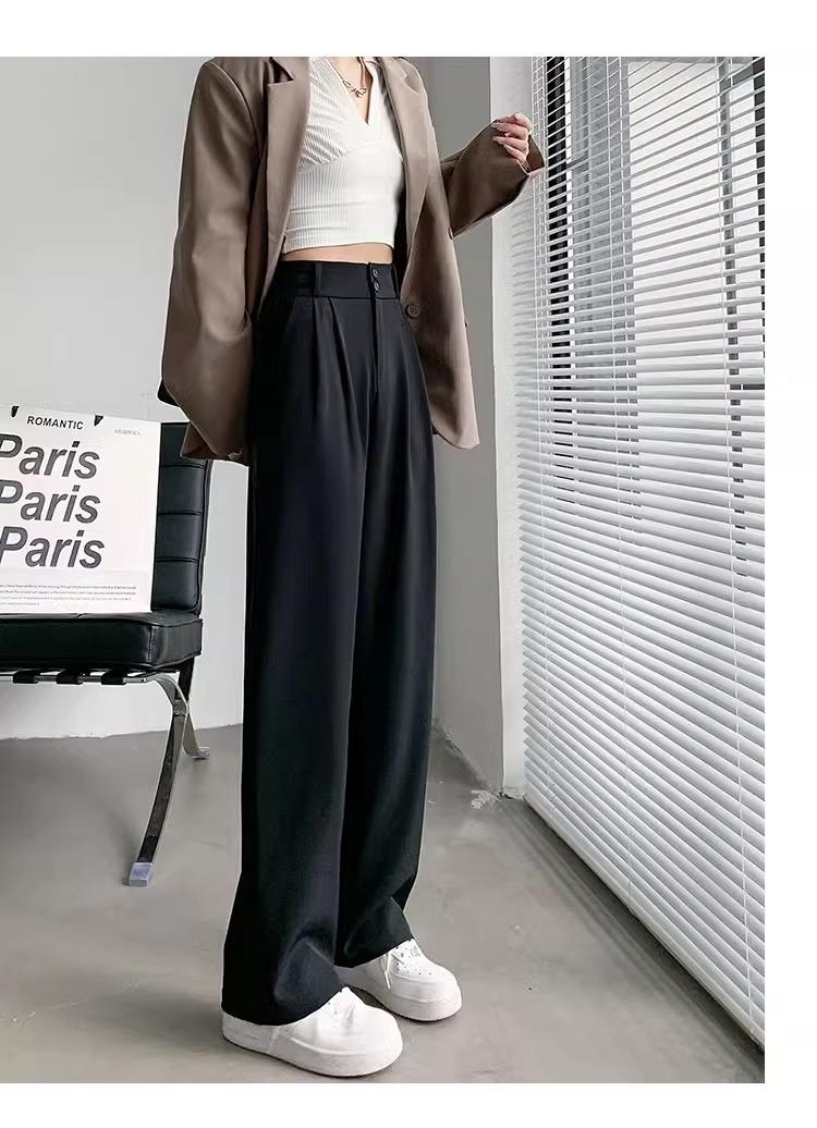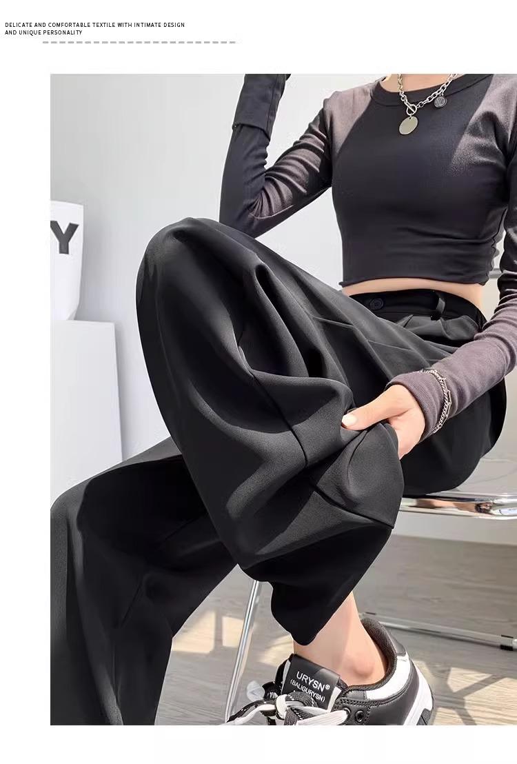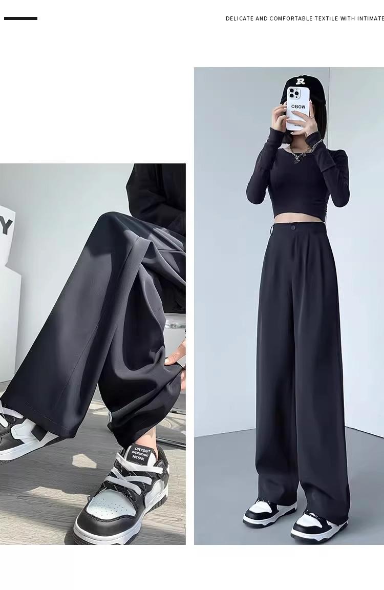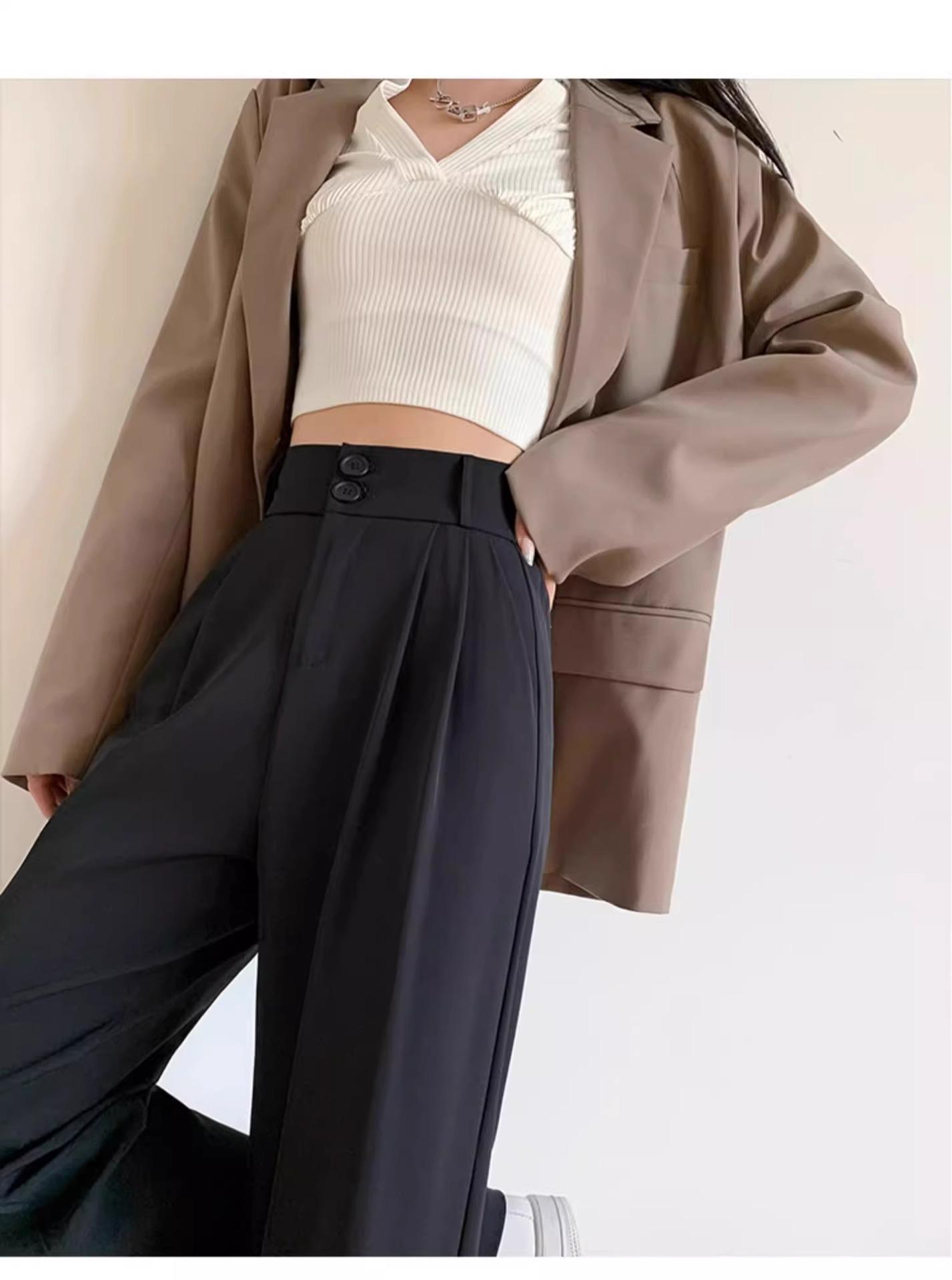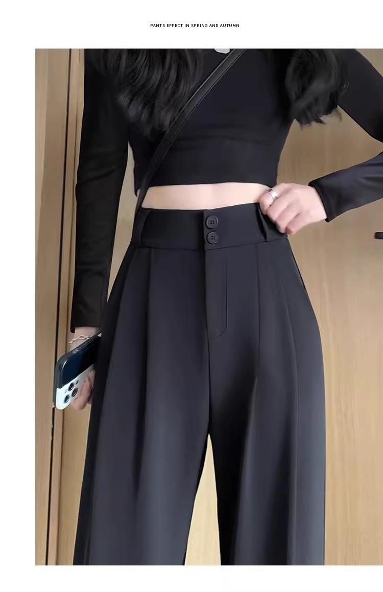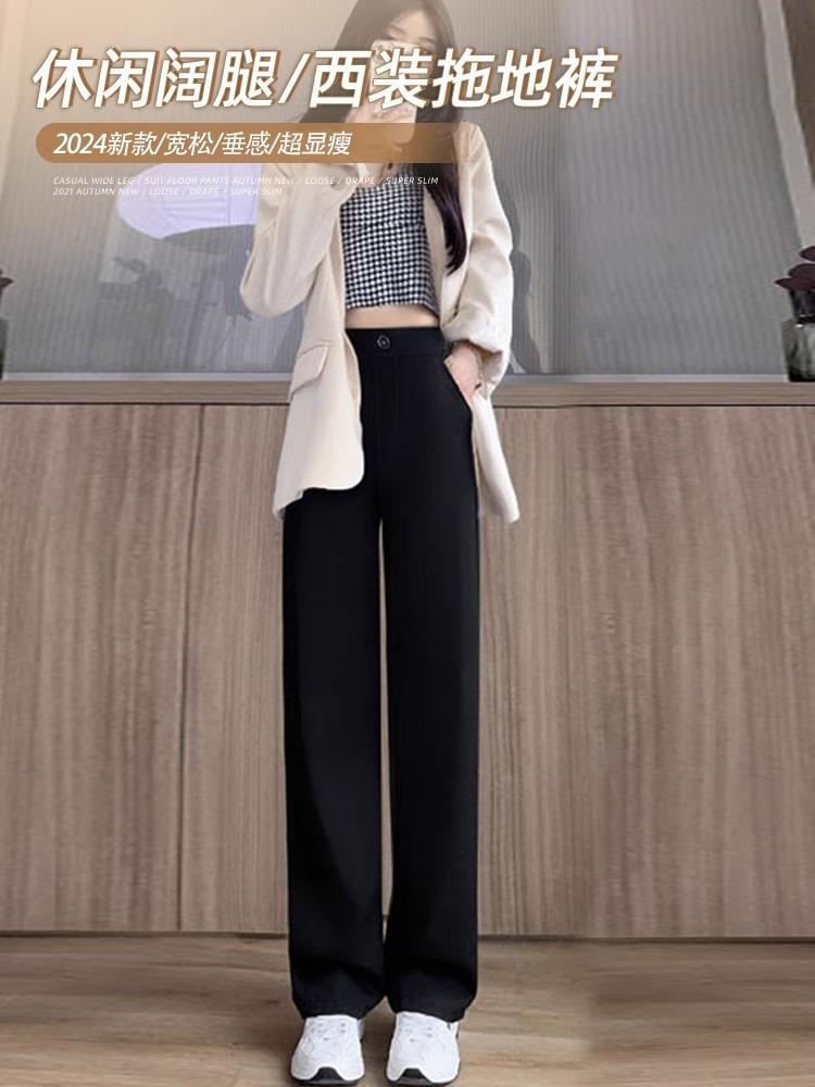 Pantalones Casuales de Traje Espesados Verano 2025 Slim Cintura Alta Drapeados Rectos hasta el Suelo Pantalones Negros de Pierna Ancha para Mujer