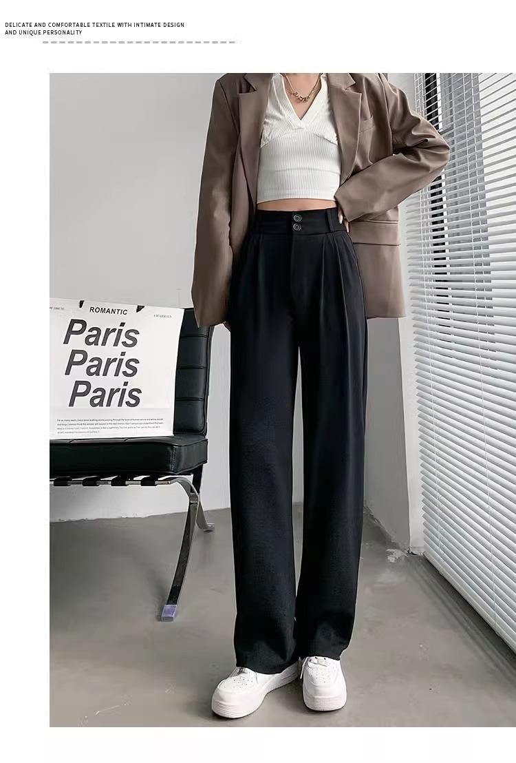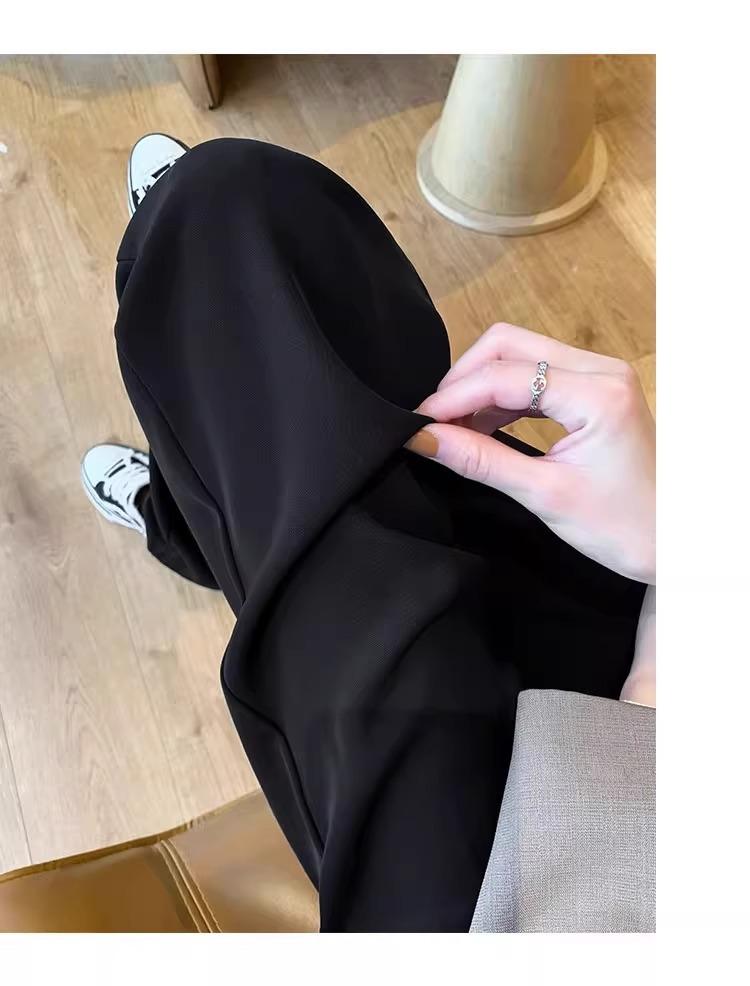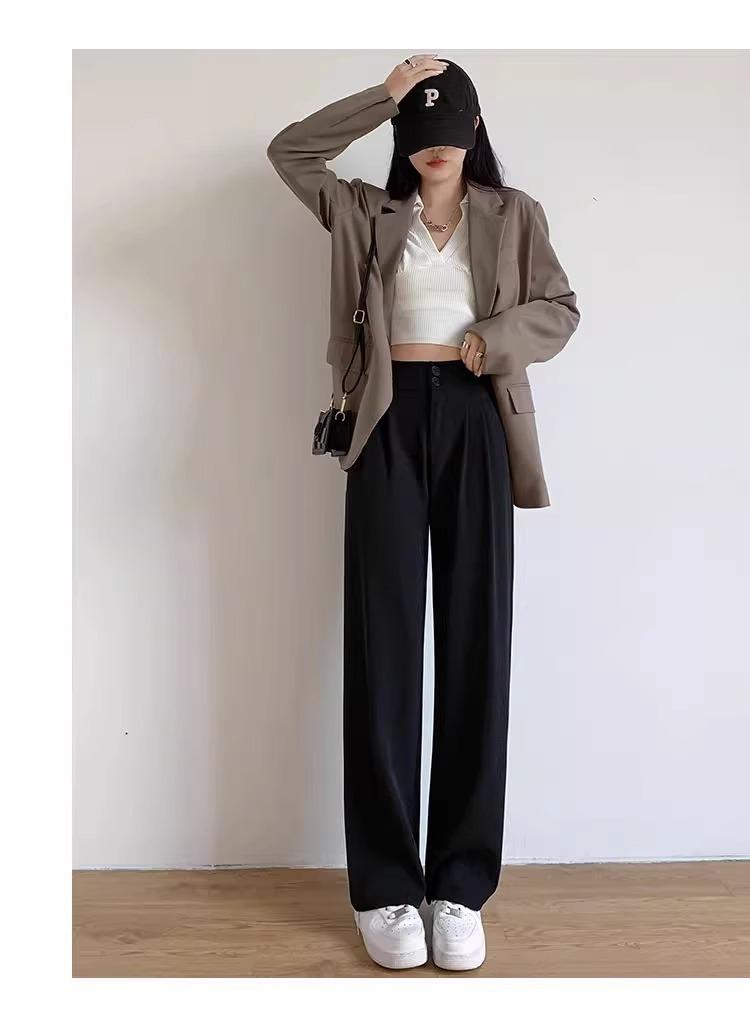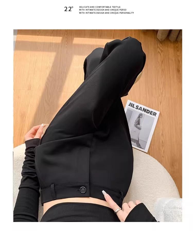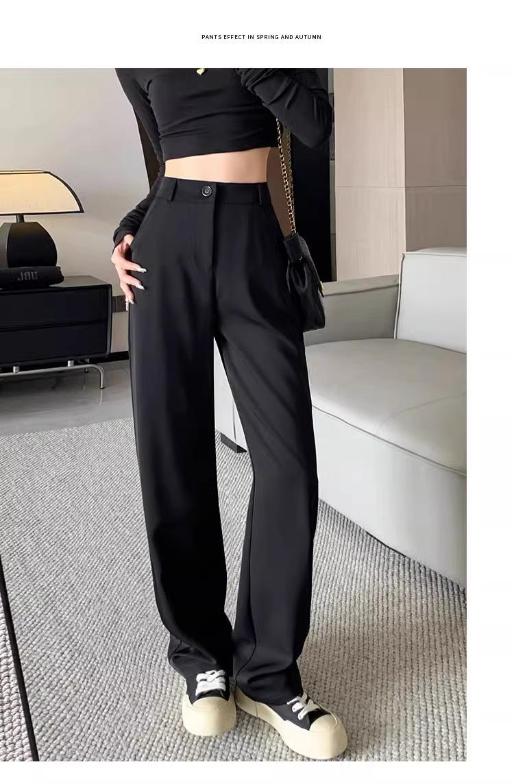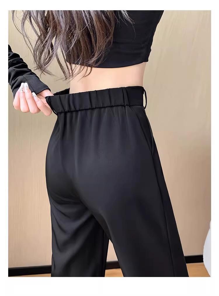 Pantalones Casuales de Traje Espesados Verano 2025 Slim Cintura Alta Drapeados Rectos hasta el Suelo Pantalones Negros de Pierna Ancha para Mujer