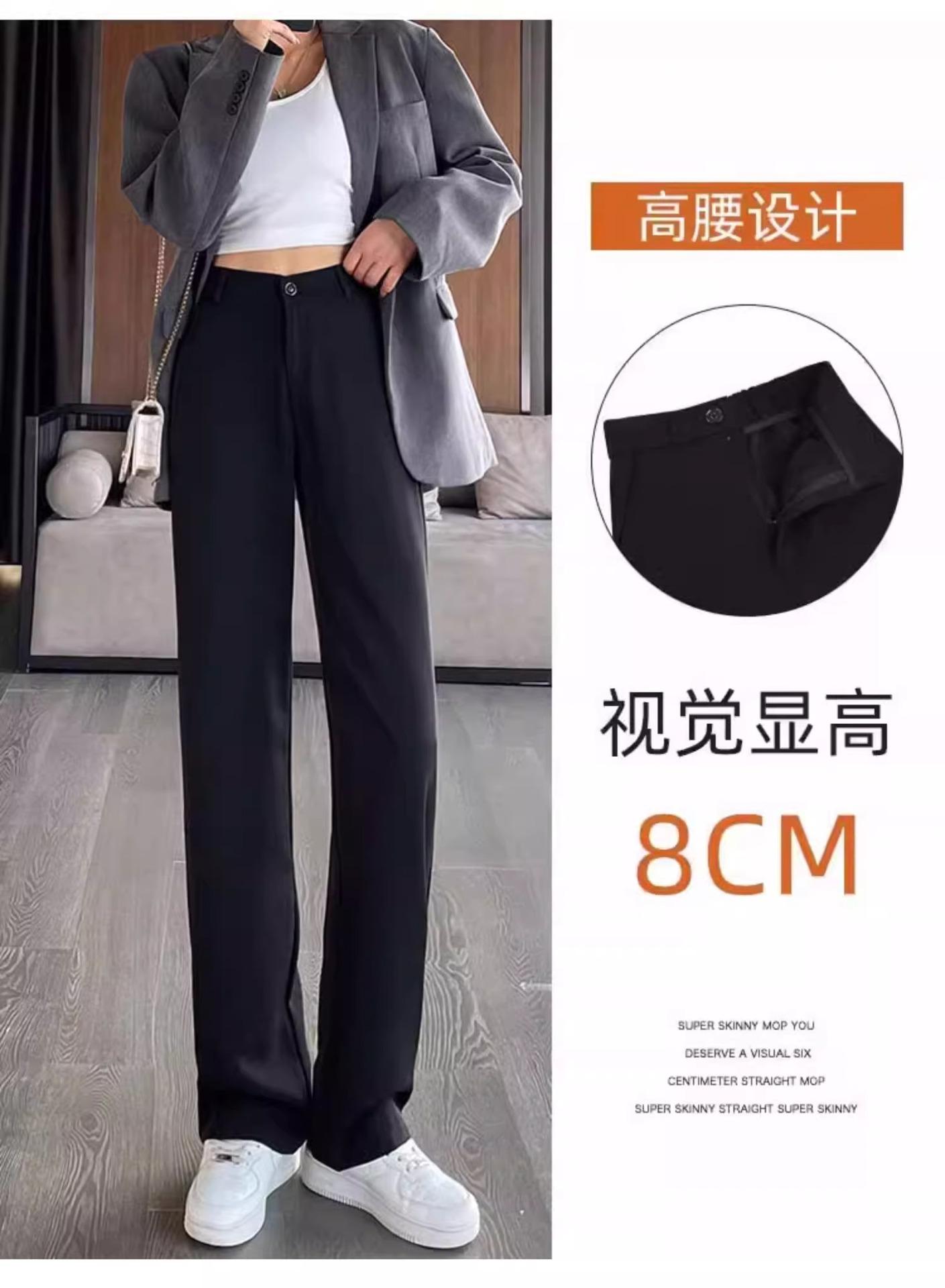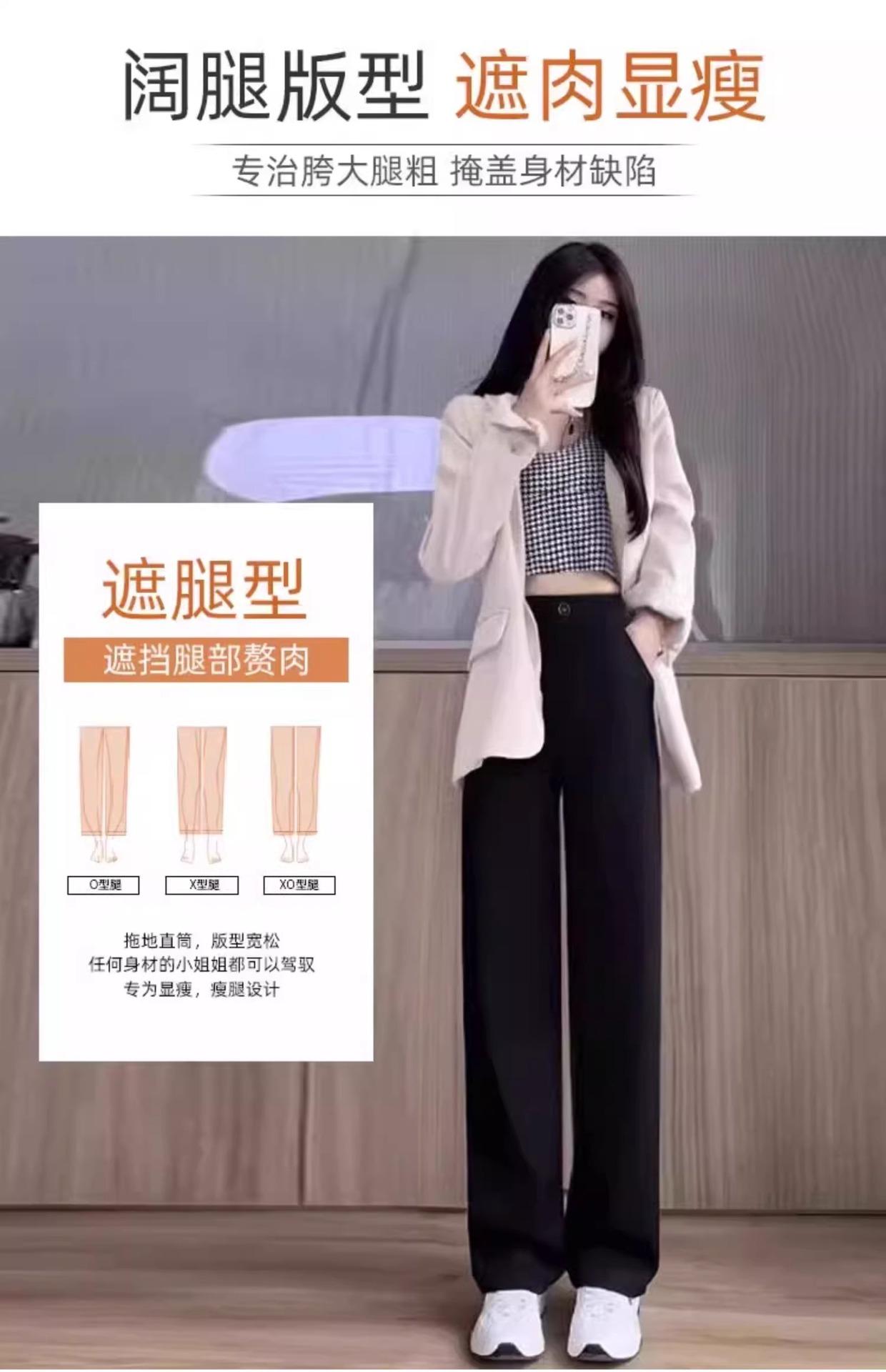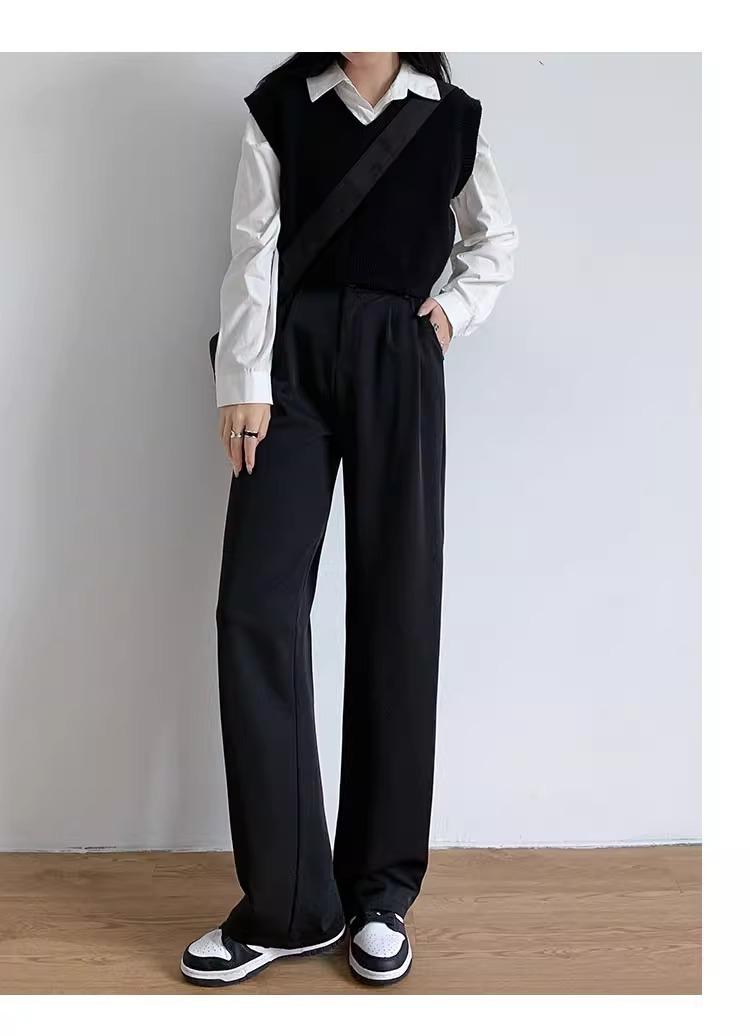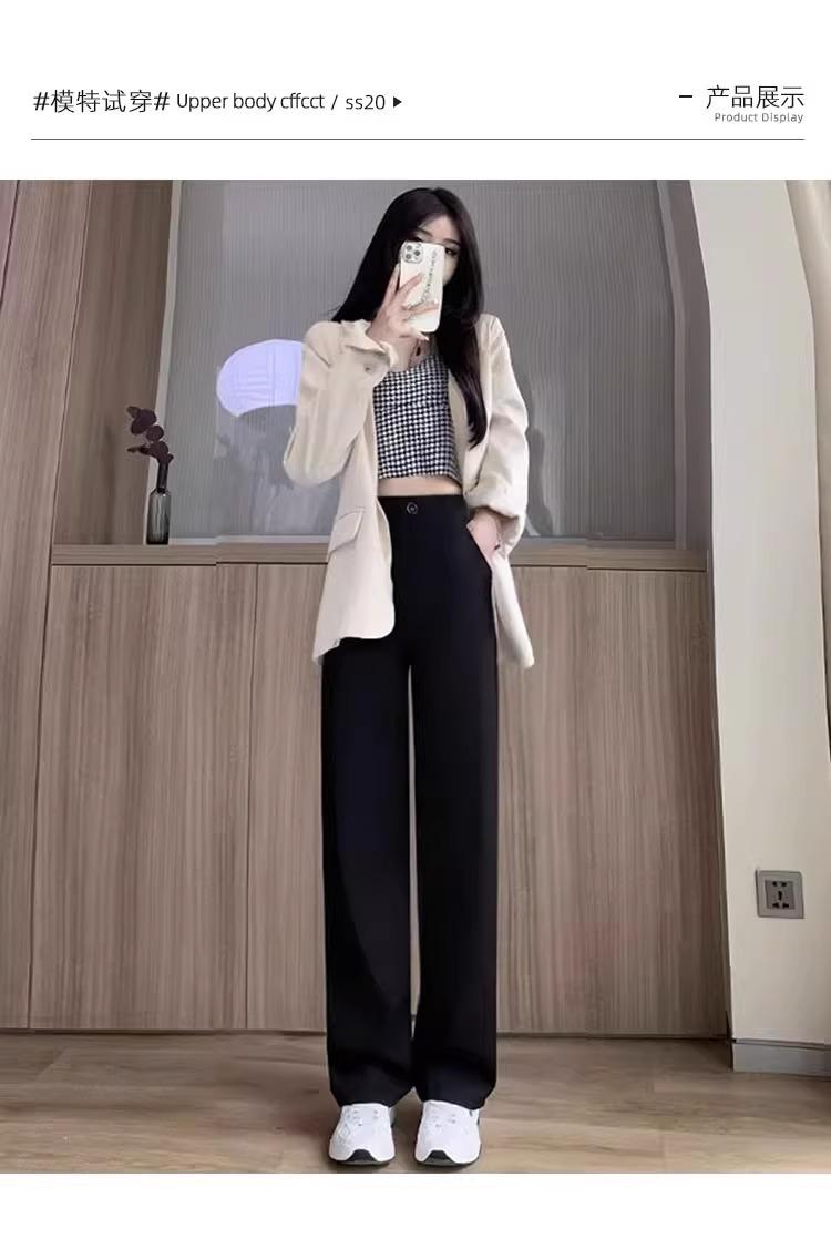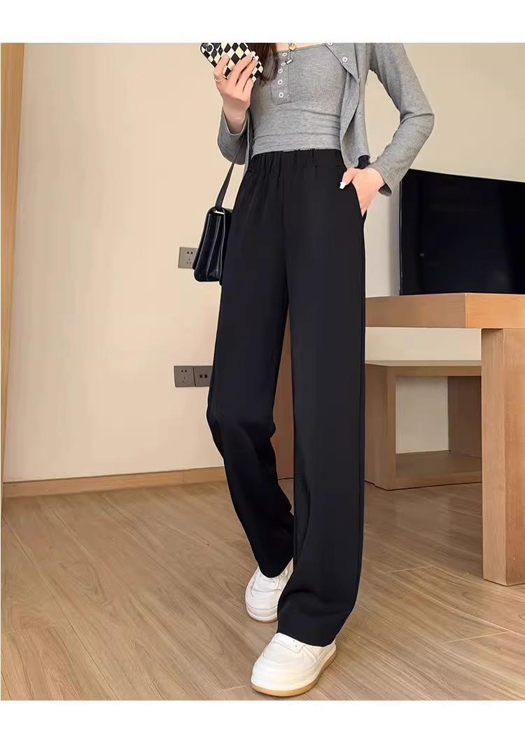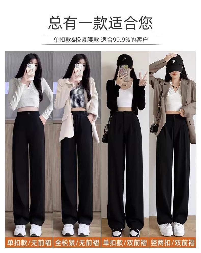Pantalones Casuales de Traje Espesados Verano 2025 Slim Cintura Alta Drapeados Rectos hasta el Suelo Pantalones Negros de Pierna Ancha para Mujer