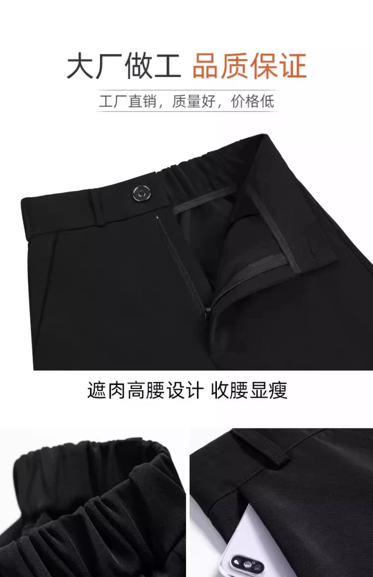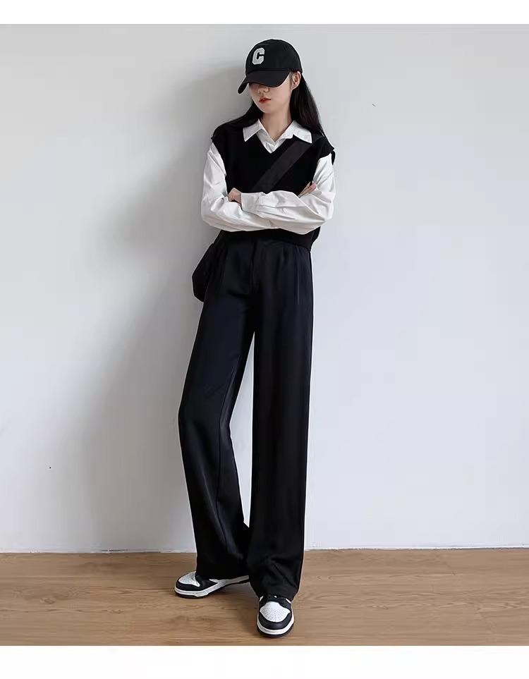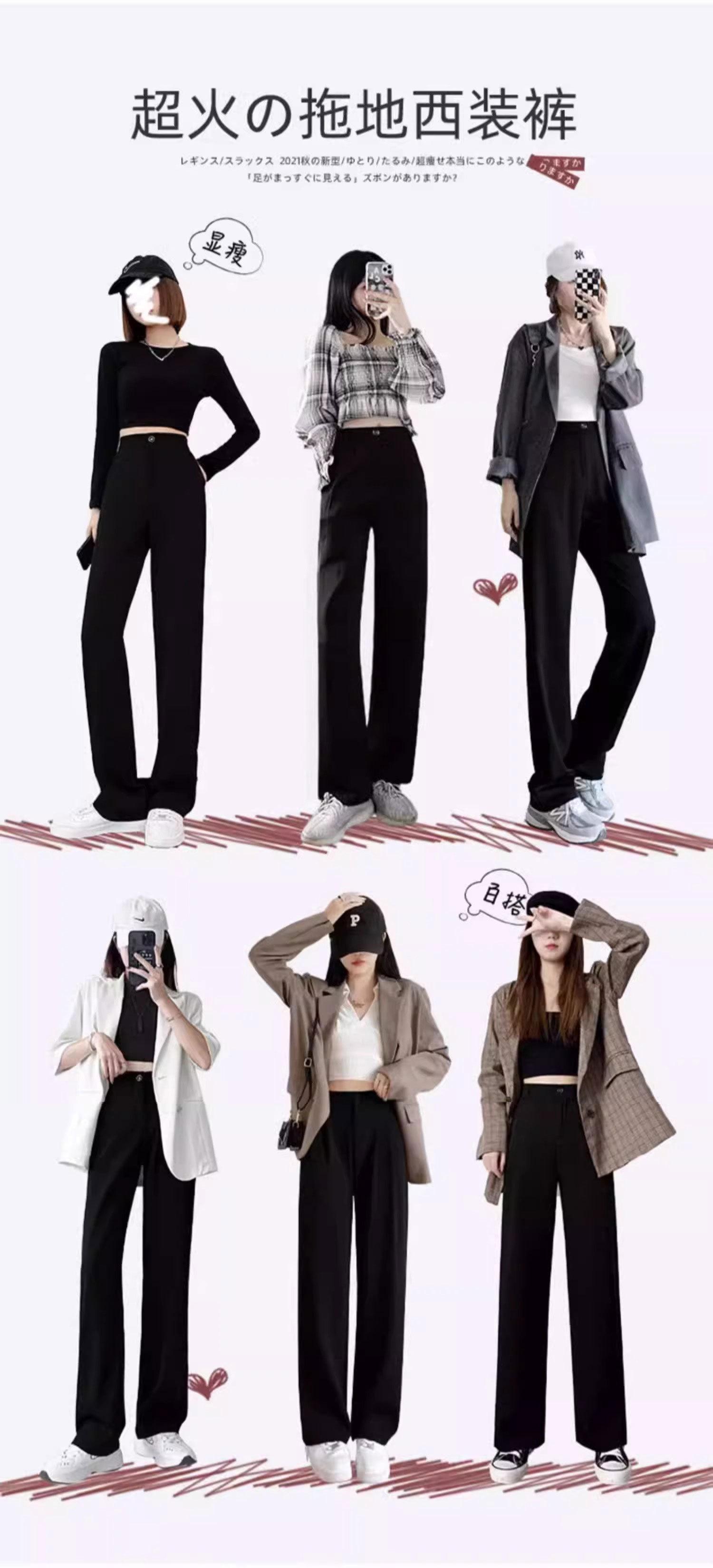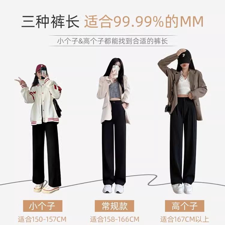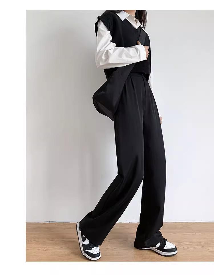 Pantalones Casuales de Traje Espesados Verano 2025 Slim Cintura Alta Drapeados Rectos hasta el Suelo Pantalones Negros de Pierna Ancha para Mujer