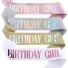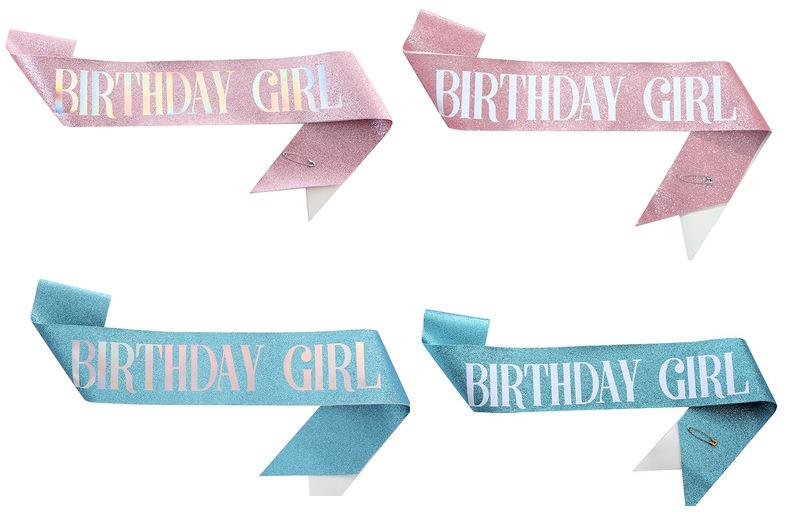 | Nueva diadema rosa de cumpleaños para niña, cinturón de etiqueta, correa de hombro de tela con purpurina para CUMPLEAÑAS, cinta para el pelo |