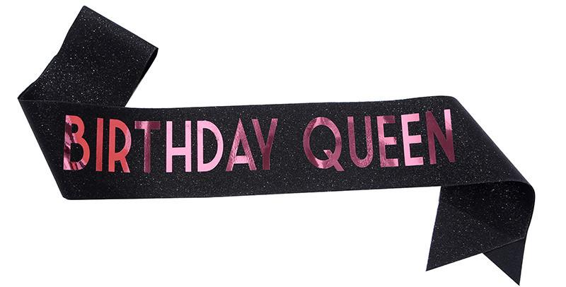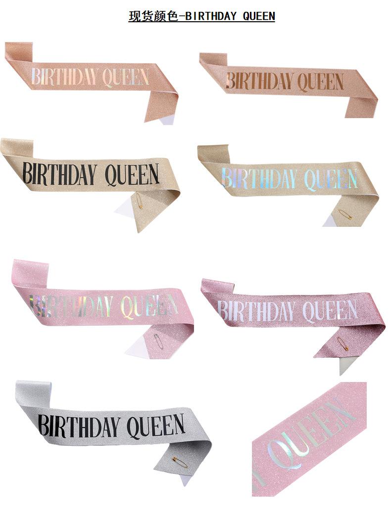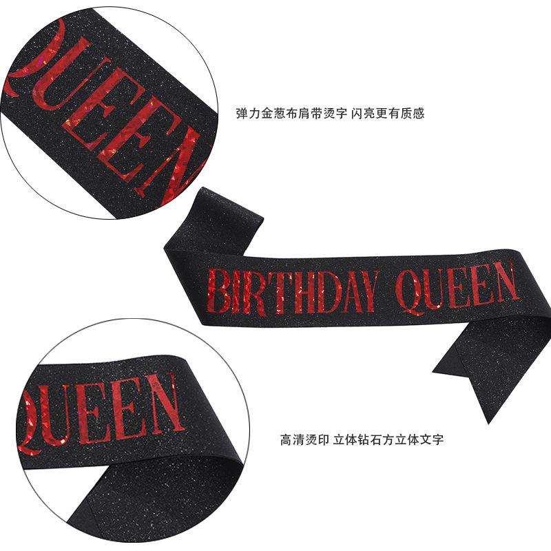 | Conjunto de diadema con correa para el hombro y corona de reina de cumpleaños de moda europea y americana, diadema con letra de reina de cumpleaños y cinturón |