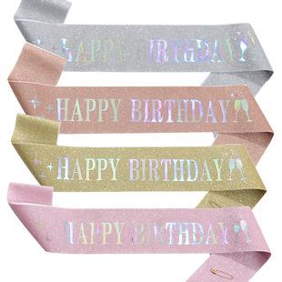 | Cinturón de etiqueta con cinta de FELIZ CUMPLEAÑOS de nueva moda europea y americana, tela brillante, tirantes de hombro bronceados, vestido de cumpleaños |