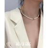 Collar de perlas naturales de agua dulce para mujer, con lazo de concha y corazón de melocotón, elegante cadena de perlas de alta calidad estilo francés para mujer.