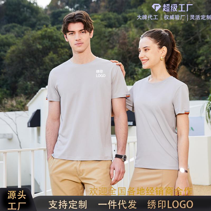Camiseta de cuello redondo con logotipo bordado, uniforme de fiesta de grupo empresarial, actividad de uniforme de clase, camisa publicitaria de manga corta de verano al por mayor, camisa cultural