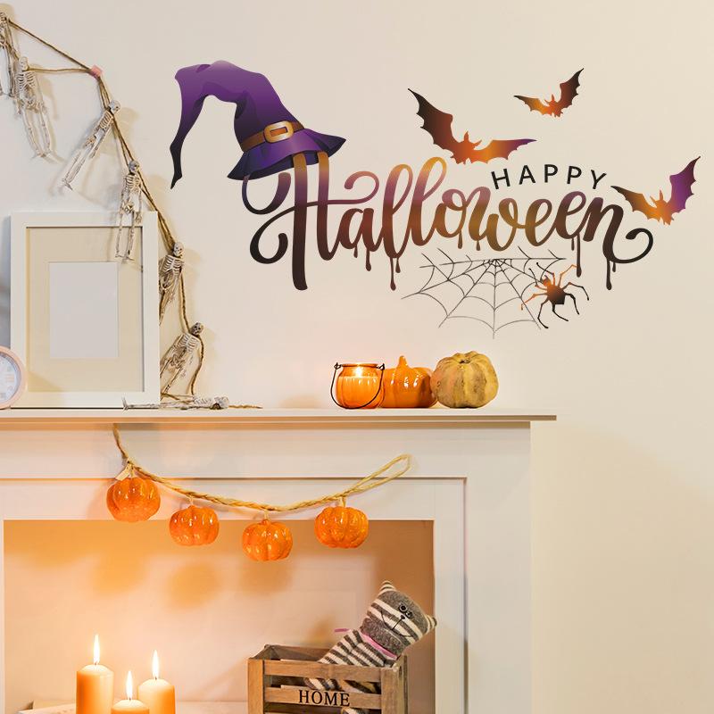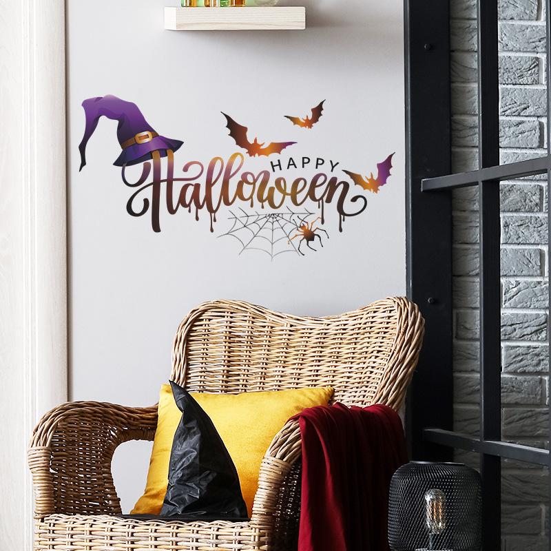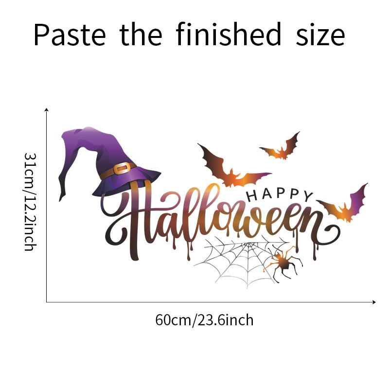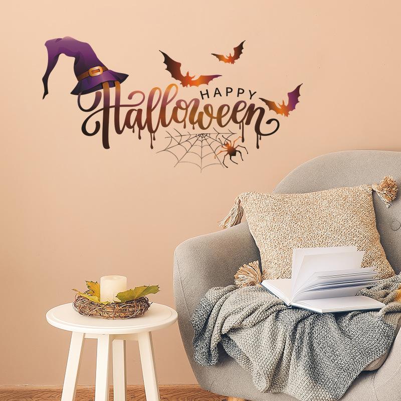 Nuevo Halloween069 Sombrero de bruja Murciélago Telaraña Fiesta Ambiente Adhesivo decorativo de pared