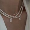 Collar de perlas naturales de agua dulce de nuevo estilo para mujer, collar de perlas laminadas dobles, diseño personalizado para mujer, cadena de clavícula que combina con todo, moderno