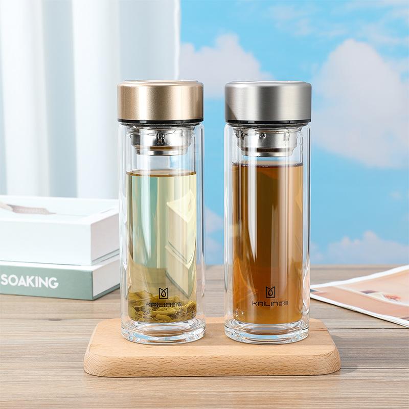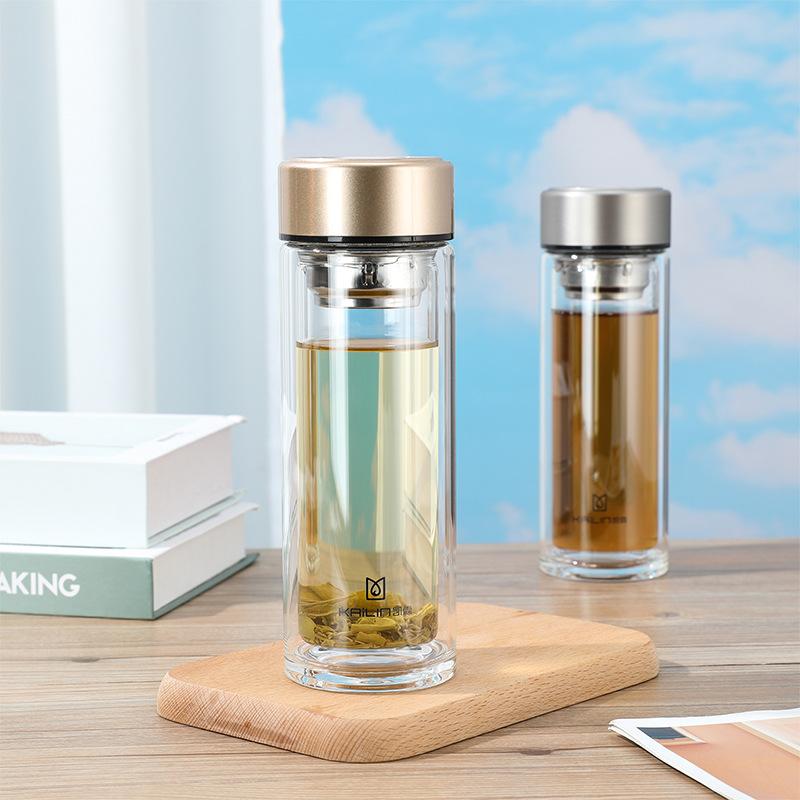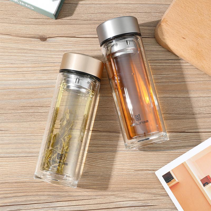 Nueva taza de vidrio doble con separación de té, taza portátil con tapa, taza de oficina, taza de oficina para automóvil, taza de personalización de logotipo